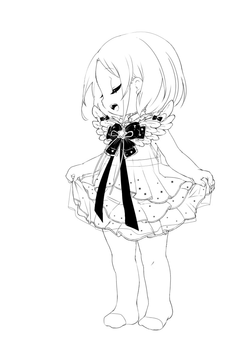 線画完成しました。羽飾りを頑張りました。