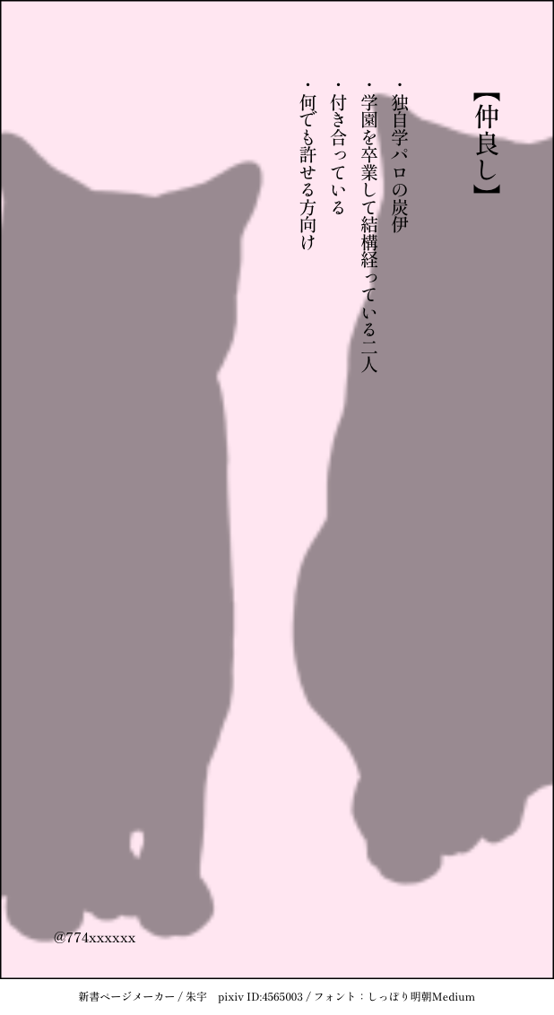表紙画像お借りしました(https://pixiv.net/users/4565003)。