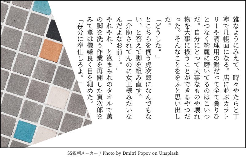 寝起きで思いついたやつ書いたんだけど書こうと思ったフレーズ書いてる側から忘れてしまってだめだった。負傷中に虎次郎にお風呂入れてもらってる薫です。漢字変換間違えて最後とらじろうになってるすみません…(辞書登録しなさい)