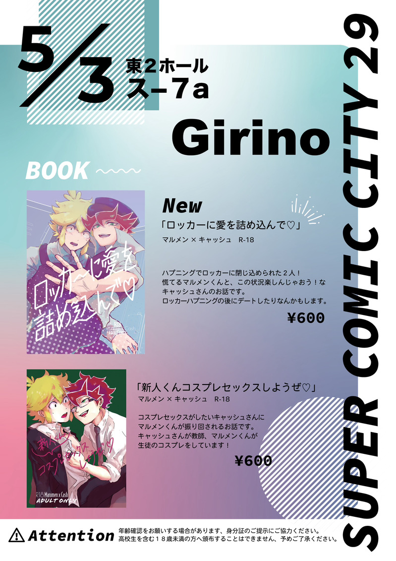 どちらも18禁です。当日は年齢の分かるものをご持参下さい。