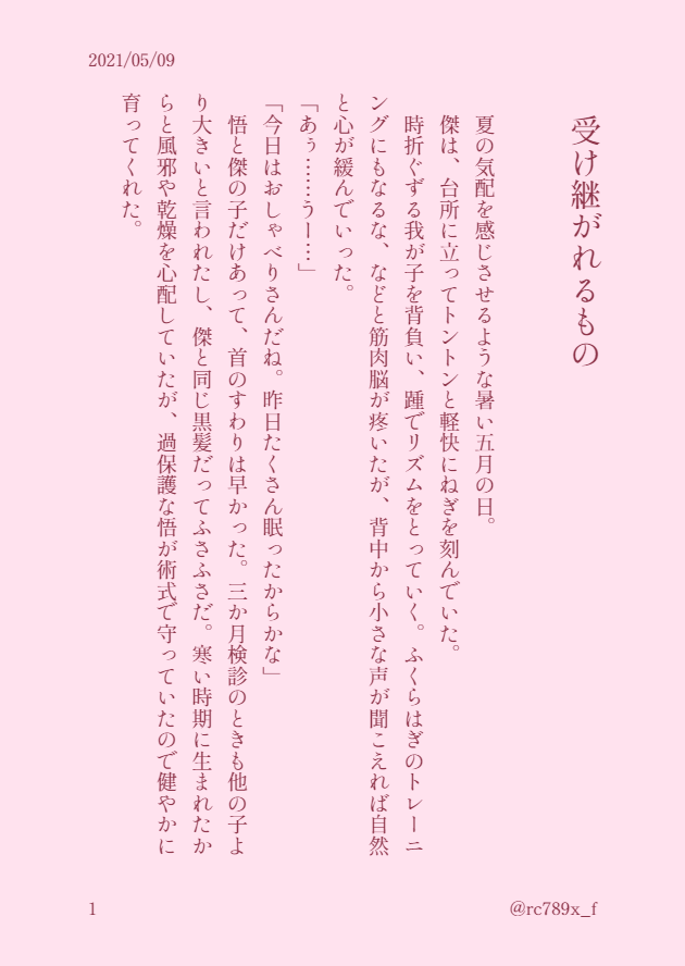母の日なので、拙作オメガバ五夏本の後日談を書きました。既刊「愚か者の信心」のネタバレ含みますので、お読みいただくご予定がございましたらご注意くださいませ。