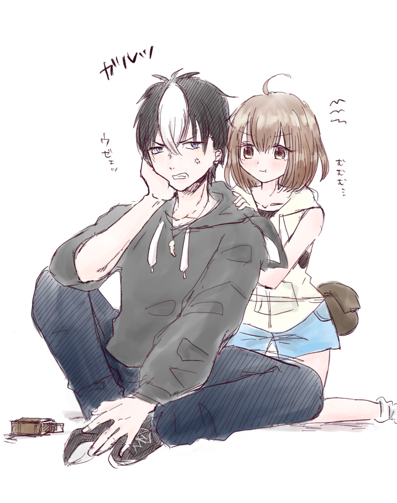 ⚠️イ.ギー擬人化注意⚠️ケンカップルな二人。ちなみに衣風が冷蔵庫に入れてたコーヒー味のプリンを🐶が食べたのがケンカの原因です笑