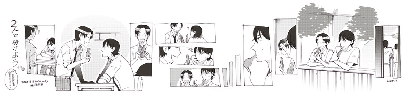 まるむしさんの『二人で分けよう』という今杉小説が大好きで、許可をいただき、そちらを元にパピコはんぶんこする漫画っぽい今杉を描かせていただきました!