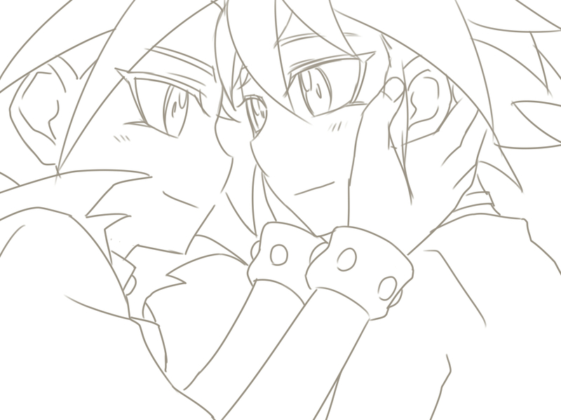 夫婦の日にどうしてもイチャイチャした二人を描きたかった…(後で清書するかもです)