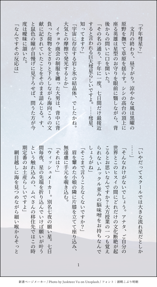 tamago_tou☆quiet followDONE億年先の残滓星になんて願うな。 show all(+8 images) Tap to full screen (size:618x1132).Repost is prohibited Let's send reactions! freqpopularsnackothersPayment processing Replies from the creator Follow creator you care about!☆quiet follow tamago_touDONE億年先の残滓星になんて願うな。 9 tamago_touDOODLE吸死パロのウォロショウ 名乗りパートがしたかっただけとも言う 6 tamago_touMOURNINGウォショのワンライで書いたやつ 脱線したのでボツ 3 tamago_touTRAINING昨日のこれ(https://poipiku.com/2073059/4307475.html)書いた後に「毎日ドギーって言ってるってことか?!」というThinking timeが発生した結果です ルクアロ 4 tamago_touTRAININGルークがハスマリーに行ってミカグラのことを思い出したりこれからのことをアーロンと話し合ったりする話 書きたいとこしか書いとらん ルクアロ 12 tamago_touCAN’T MAKE初期ルクが私立探偵だったらという時空 M6序盤あたり 全てが幻覚 3