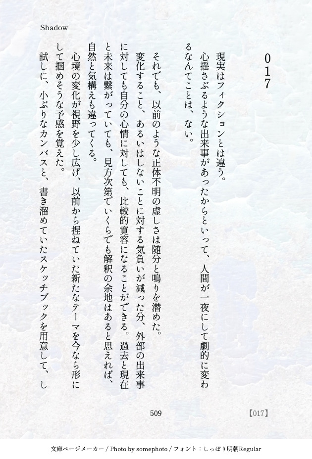 み(ずなら)☆quiet followDONE美術組シリーズ27/ パト氏の本音と画家の本音。 #美術組シリーズ artGroupSeries show all(+36 images) Tap to full screen (size:630x928).Repost is prohibited Let's send reactions! freqpopularsnackothersPayment processing Replies from the creator Follow creator you care about!☆quiet follow み(ずなら)DONE『チェイス!』ことDhoom:3 公開10周年お祝い絵。本編ネタバレを含むのでご注意ください。パスワード:『チェイス!』本編観た?(y/n) 2 み(ずなら)SPOILER【フォロワーさんの推しが描きたい】チャレンジのログ。国宝キャラ他の詰め合わせ。『チェイス!』のネタバレを含むので、本編観た人だけ「yes」でどぞ。 2 み(ずなら)SPOILERチェイス!ふんいき漫画タイトル『手(haath)』本編ネタバレにつき、パスつきパスワード:チェイス!観た?(y/n) 7 み(ずなら)SPOILER『チェイス!』ファンアート[人物:アナログ鉛筆/背景:アイビス/+色調補正]本編ネタバレがあるので、未視聴の方は見ないことを強く推奨します。パスワード:『チェイス!』本編観た?(y/n) 3 み(ずなら)DOODLEおひさしぶりです。その後の美術組です。(思いつきの、取って出し小話) 1869 み(ずなら)TRAINING描いたものをただ時系列順に放り込んでいく倉庫。下に行くほど新しい。(2022.9月から突然始めたお絵かき) 11 related works み(ずなら)DONE美術組シリーズ09/ 揺れる画家、頑なな画家。 12 み(ずなら)DONE美術組シリーズ14/ 画家の内省回。 12 み(ずなら)DONE美術組シリーズ08/ 行動力の権化、登場(先生)。 20 み(ずなら)DONE美術組シリーズ05/ 画家と先生、顔合わせ。 15 み(ずなら)DONE美術組シリーズ03/ 画家回想回。捏造しかない 12 み(ずなら)DONE美術組シリーズ04/ 画家と渡世とバサラ姐さん。 14 み(ずなら)DONE美術組シリーズ06/ 視点変更、互いの胸の内。 20 み(ずなら)DONE美術組シリーズ01/ まずは冒頭、おおむね画家の独白です 12 み(ずなら)DONE美術組シリーズ02/ バサ姐と画家の会話書くの楽しい。先生瞬間登場回 21 recommended works ごましおDONE『抱擁の切片』のおまけです!本編を読んでいただいた後にご覧ください。 3529 雪雨風樹INFO一応お知らせしときます。今現在pixiv限定で、「マイピク」申請者にのみゴウコハ小説の表紙イラスト4枚のネップリ宣伝中です✌こちらに載せた画像は「マイピク」申請者用の為、ゴウコハ民以外での保存はご遠慮させていただきますm(_ _)m今年いっぱいでゴウコハ作品は終わりにいたします故、来年以降は全く新作は出ません。今年限りとなりますので「マイピク申請」希望者はpixivにて申し出下さい。 2G仙人DOODLE大爱特爱! 2 kouun_yueDOODLEパンフ中身匂わせ有 よしよしの🐈DOODLEコンポタはじっくりコトコト派です。 6 suzsr0DOODLE𝙲𝚘𝙲「夜は寝た方がいいと思います。」𝙿𝙲:三田部 啓𝙴𝙽𝙳1 Tubureta_OngrDONE現パロ/微年齢操作(3歳差位)。兄弟では無く他人設定です。 2155 _kokokitann_26DONE麺牛のイチャイチャスケベ漫画。 21 WDamanaaaDOODLE