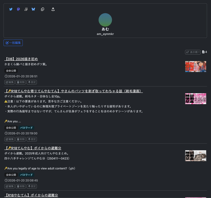 am_aynmkr☆こそフォロお知らせ今まで拙作を見ていただき、またスタンプをいただき本当にどうもありがとうございました!まだ試運転といったところなのですが、思うところありまして一時投稿場所をべった〜+に引っ越しました。ご興味ありましたら↓https://privatter.me/user/am_aynmkr タップで全画面(原寸:2014x1892)無断転載禁止 リアクションをたくさん送って応援しよう! よく使う人気おやつその他支払処理中 作者からのリプライ 気になる人をどんどんフォローしよう!☆こそフォロ am_aynmkrお知らせ今まで拙作を見ていただき、またスタンプをいただき本当にどうもありがとうございました!まだ試運転といったところなのですが、思うところありまして一時投稿場所をべった〜+に引っ越しました。ご興味ありましたら↓https://privatter.me/user/am_aynmkr am_aynmkrらくがき2026FA描き初め(かまくら鍋パとボツ案) 3 おすすめ作品 wakame2021過去のを晒す6月のジュンブラでの無配ペーパーでした。時間ないけど頑張りました、背景はないけど。死滅回遊後IF。時間軸がコロコロで、読みにくくてすみません。手癖で描いた後、15歳悠仁君が描けなくなるので困っている。 8 euonymus_11できた🔞ミリ環。新たな性癖に目覚めそうな思春期ミリオくん。最後のは自己満足のおまけページです。 5 アココチャンらくがきはにゃみさんです sore_1022供養ショクド~のおばちゃの弟子になる夢漫画🌾字汚いので頑張って読んでください🙏 7 aiマックん作業進捗肩こりひどいけどもうちょっと mo_mochiらくがき最終回見ながら描いてたら、気持ちが入りすぎてまた泣いてしまって描けないという罠… Mitsuki_Kashimaできた(卓報告用)CoC『催眠ダーリンLv.1』- エンド2KP/KPC:鹿島みつき/天之宮 百合子PL/PC:おこのみさん/勝 勇 3 茉莉花メモ暗モアスメモ 3月27日 Part1 101 ととこできた科学の価値を理解されない怒り