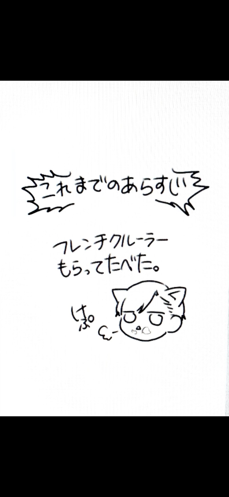 tai_nikke☆quiet followDOODLE5/9ジーンさんの手だけ登場 ##朝フリート show all(+6 images) Tap to full screen .Repost is prohibited Let's send reactions! freqpopularsnackothersPayment processing Replies from the creator Follow creator you care about!☆quiet follow tai_nikkeDOODLE夏の辰彦(と、それを目撃した子) 2 tai_nikkeDOODLE『メルティホワイトアウト』コミックス描き下ろし「6話フェードアウトの補足」8ページ3コマ目の手描き文字「○○ですよォ!?」の○○部分がパスワードです(漢字二文字) 8 tai_nikkeMOURNING作中で出てきた瀬ヶ崎と葉のLINEなんだけど意外とうっすら読めてたみたいですね(';')瀬ヶ崎の職場で誰かの手土産のきんつばが余ってたので、葉が好きだったら持って帰ってやろうと思ってきんつば食べるか訊いたのに、葉はてっきり作るか買ってくるかしろという話だと思い込んで返事をしているため知らなくて呆れられたと思い謝っている、の図です。頼むからもっとちゃんと会話してほしい。(『体感予報』より) tai_nikkeDOODLE「サイズ大きいから、おさがりあるかも」っておっしゃってたのが面白かったので。自分の服着てる葉見た瀬ヶ崎さんウルトラハッピーでは? tai_nikkeINFO『その世のどこか、蒼天のゆりかご』パスワード公開小冊子紙書籍版の最終ページ(奥付:発行年などが書いてあるページ)で、地球儀の下に書いてある文字のうち、末尾の英字8文字を入力してください。※半角スペースは詰めてください/ビックリマークは不要 12 tai_nikkeDOODLE 2