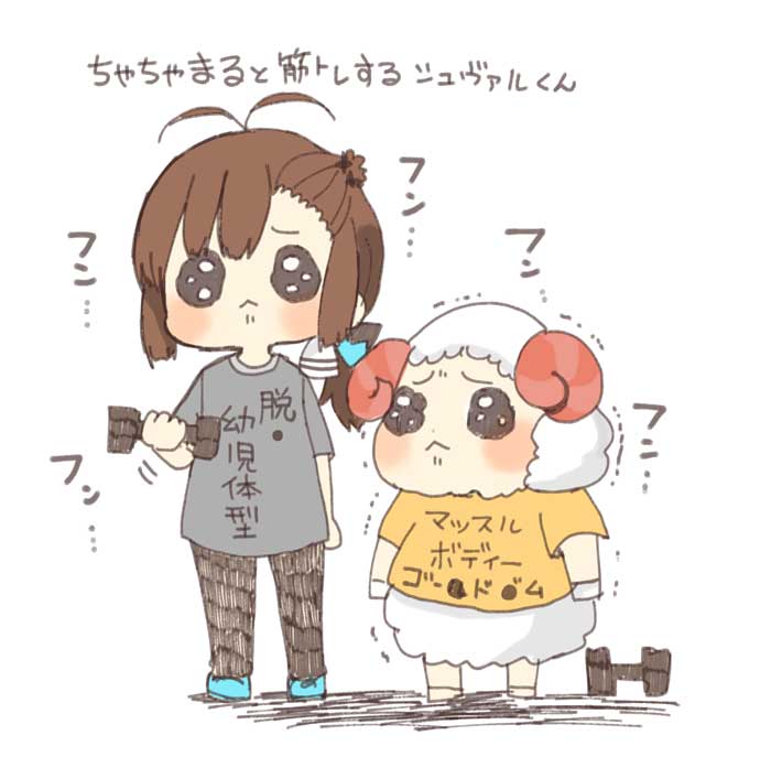 今日のオークスに向けてデアタクちゃん描こうと思ってたのに、気がついたらちゃちゃまると筋トレするシュヴァル兄さん描いてた。