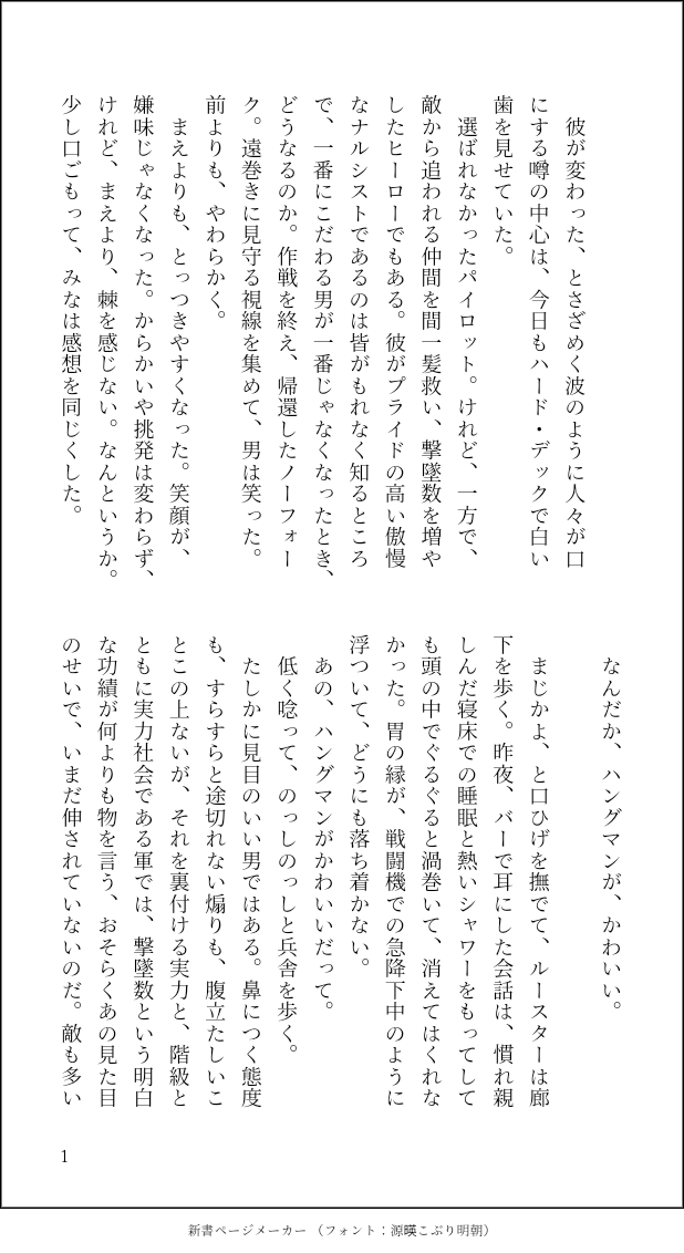 theblackbox58☆quiet followREHABILIルースターとハングマン。矢印がみえるきがしますが、そういう関係にはならないふたり。本編後のハングマンの変化に思いを馳せると妄想が止まらない。表面上変わることはないと思うのですが、みんなの影響でかわっちゃうハングマンかわいいので多少性格かわってます、ご注意ください。多分、よってくる雑多な人たちに面倒になって一週間でもとに戻る。 #ハングマン hangman #ルースター rooster #TMG show all(+3 images) Tap to full screen (size:618x1132).Repost is prohibited Let's send reactions! freqpopularsnackothersPayment processing Replies from the creator Follow creator you care about!☆quiet follow theblackbox58DONE【ルスハン】きみがため【全年齢】ハッピーバレンタイン!ルスタのために苦手なお菓子作りに挑戦するハンのはなしです。うちのルスハンは、ルス料理上手、ハン合理性重視がデフォパスワードは英字小文字三文字です 7 theblackbox58PAST【ルスハン】薔薇を一本【全年齢】2023/02/14エックス上げの再掲ですハッピー♡バレンタイン基地内で追いかけっこするルスハンルス→→→(←←)←ハンがすきなんですよねパスワードは小文字で英字三文字です 3 theblackbox58DOODLE【ボブハン】杞憂【全年齢】ボブの愛が減っているのでは?!と危機感を覚えるハンの話。ハンがでろでろ。パスワードは英字三文字です 5 theblackbox58PAST【マクダノ】12月26日【全年齢】Xあげ再掲。できてないふたりの過去と今。ラストシーズンの内容が含まれます。パスワードは英字三文字 3 theblackbox58PAST【ボブハン】酔いにでまかせ【全年齢】Xあげ再掲。お題使用です。ハングマンはボブとお酒を飲むのが好き。「お酒を飲んで赤くなった君と見つめ合うと、なんだか素敵な勘違いができそうだから」#shindanmakershindanmaker.com/687098パスワードは英字三文字です 4 theblackbox58PAST【マヴェ←ハン】ひとおもいにどうぞ【全年齢】Xあげ再掲。ハッピーハロウィンするマヴとマヴにでろでろなハンがどうしてもよみたくて。この狼さんは、落ちそうだから落としてみよっかな、くらいのノリだとおもいます。パスワードは英字三文字 3 related works MASAKI_NDONETGMルスハン片想い編 4270 deracine74DOODLEボブの🍆をもぐもぐするハングパスワード:いつもの数字3文字 theblackbox58REHABILIルースターとハングマン。矢印がみえるきがしますが、そういう関係にはならないふたり。本編後のハングマンの変化に思いを馳せると妄想が止まらない。表面上変わることはないと思うのですが、みんなの影響でかわっちゃうハングマンかわいいので多少性格かわってます、ご注意ください。多分、よってくる雑多な人たちに面倒になって一週間でもとに戻る。 4 deracine74DOODLEウチのボブハン👓🥴《食べ物編》ボブとハンの出会いから結婚までを食べ物を交えて 9 はるおかDOODLE【女装】バニーハンと馬ハン課金したい!! theblackbox58PAST【TGM】THAT LOOK【全年齢】作戦のあと、ハードデックでわちゃわちゃするガンズと、マーヴから、その顔、を学ぶハングマンのはなし。パスワードは英字三文字 4 MASAKI_NDONETGMルスハン成立後ボブとハンでボーイズトーク 5193