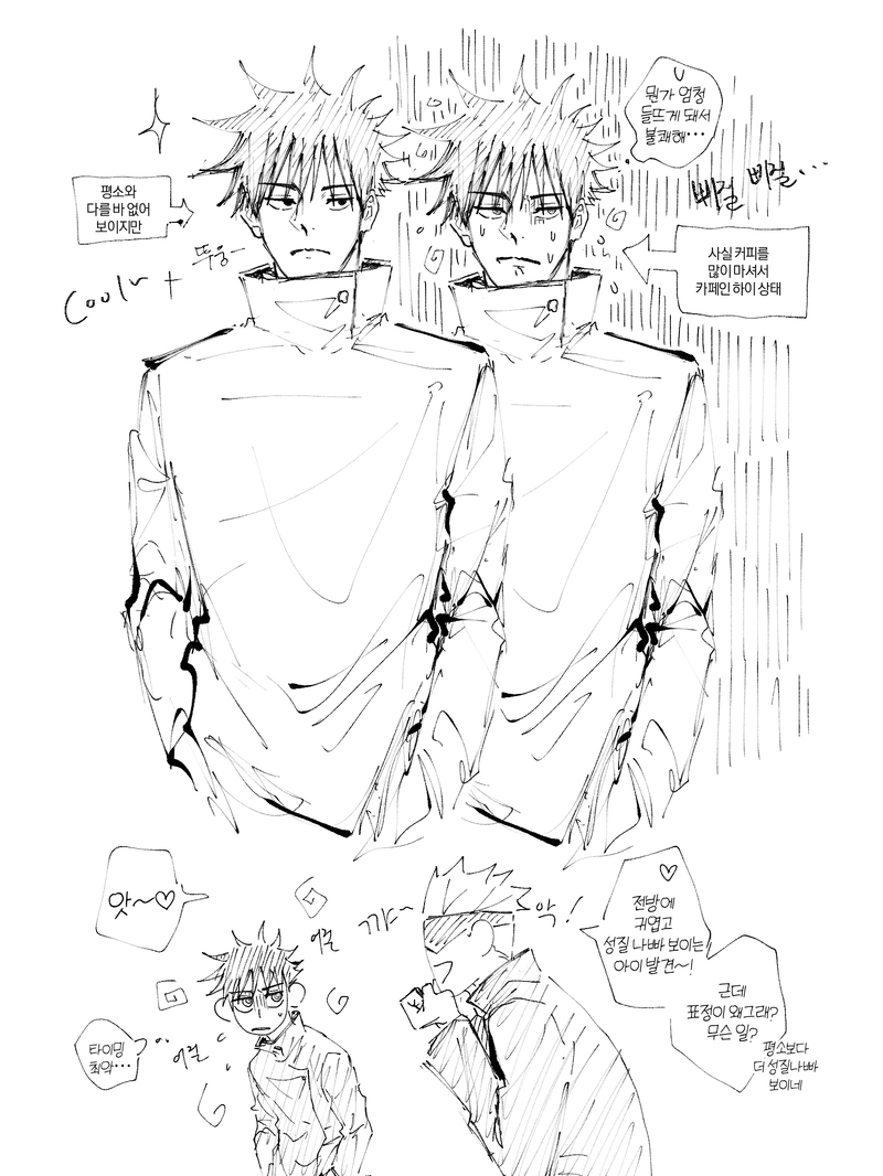 DO(도)☆quiet followDOODLE카페인 하이~~ 각성되면 사람이 막… 들뜨게 되는 그 느낌 아시죠 show all(+5 images) Tap to full screen (size:1500x2000).Repost is prohibited DO(도)PAST 20 DO(도)DOODLE주령벌레와… 1906…별 거 없어요 그치만 조금 무서워서 패스워드 겁니다…PW(숫자 4자리)= (츠미키가 쓰러진 연도) - (고죠와 처음 만난 해의 메구미 나이)비밀번호 아주 간단한 숫자 사칙연산이에요…ㅎㅎ 8 DO(도)DOODLE카페인 하이~~ 각성되면 사람이 막… 들뜨게 되는 그 느낌 아시죠 6 DO(도)DOODLE고죠후시~^^고죠가 손을 빌려주는 이야기…저는 메구미에게 자발적인 행동을 요구하는 고죠가 좋네요…참된 스승의 자세입니다…그린 사람이 그린 사람인지라 미적지근합니다… 9 DO(도)PROGRESS오타크 그림은 그리면 얼른 올리고 싶어져서 걍 샘플로 쓸 앞부분부터 와다닥,,, 완성해 버린(ㅋㅋㅋㅋ)안 사귀는 고구미+근데 자는 사이+자고 난 아침에 용돈 주는 남자(이거 미친녀석이죠,,)+그 돈 안 쓰고 모으는 짝사랑 메구미… 라는 내용…이며 마감 성공하면 고구미 온리전 때 나옵니다,,, 아마 80p 넘을 듯한,. ,제목당신을 사는 밤 23 DO(도)DOODLE파렴치한 고죠후시 낙서 모음입니다…부끄러워서 팔로워 공개로 올립니다… 6