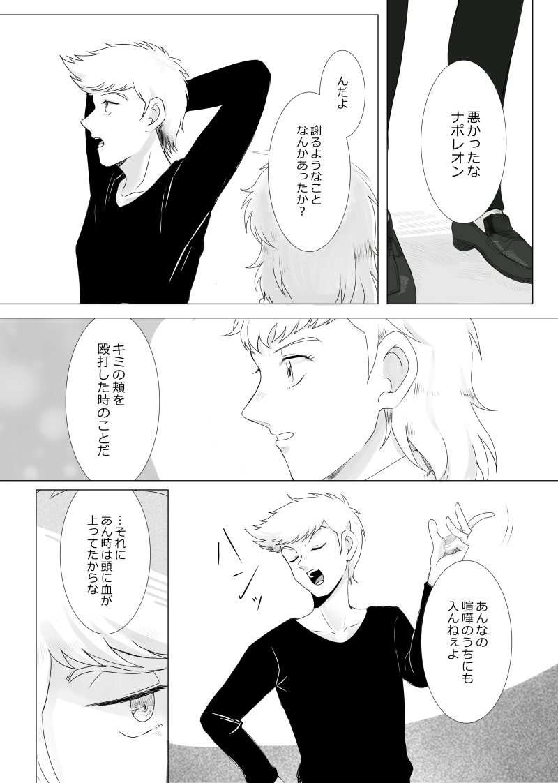 フランスコンビがビンタエピのあれこれを話しているシリアスめな漫画