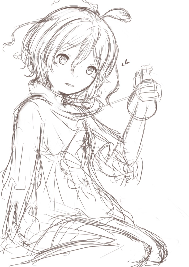 リア友とお電話しながら描いてたDr.STONEのスイカちゃん🍉 今日中には線画にしたいなぁ( ˇωˇ )