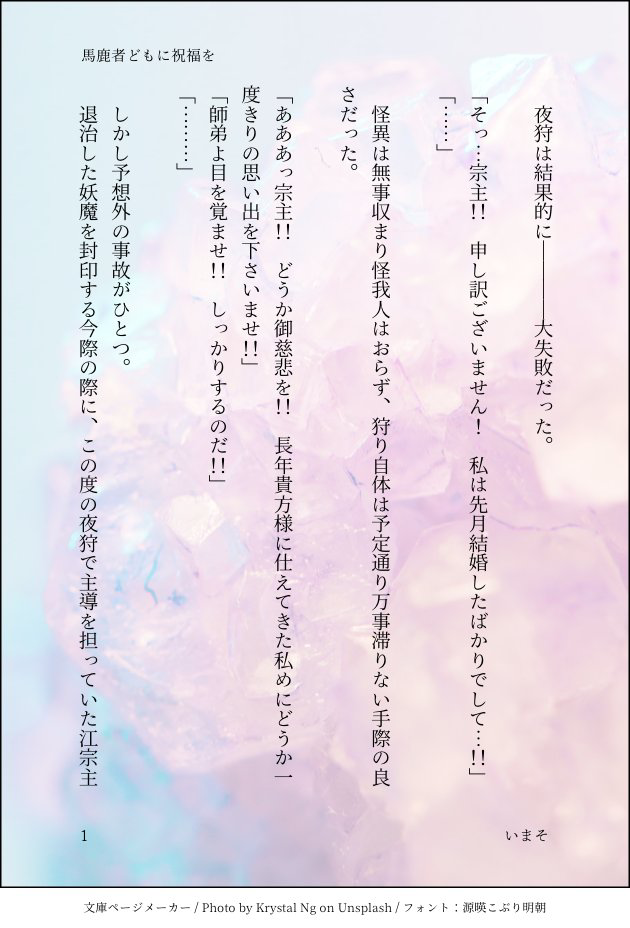いまそ☆quiet followREHABILI馬鹿者どもに祝福をワンドロ参加時の淫紋ネタ曦澄に加筆しました⚠️魔羅表現あります!⚠️夜狩り先で淫紋の呪いを受けた澄は雲深不知処の蔵書閣を頼ることになりますが…!?👺 #曦澄 show all(+12 images) Tap to full screen (size:630x928).Repost is prohibited Let's send reactions! freqpopularsnackothersPayment processing Replies from the creator Follow creator you care about!☆quiet follow いまそDONEせれんでぃ・ぴてぃ①タイトルの意味は予想外の幸運🕊さはんや反派向师尊〜に出てくるような系統(システム)もいます江澄には悪いですが、まず手始めに死んでもらいました曦澄になります 8 いまそDONE夢で会いましょう⑥曦があの出来事について精神的な折り合いをつけて一歩踏み出します曦澄進行度60%くらい曦藍の男のヤバい所をしっかり引き継いでいると思います☺️心の傷は中々癒えないけど、時間と愛は薬になるはずと信じて曦澄にします 8 いまそREHABILI馬鹿者どもに祝福をワンドロ参加時の淫紋ネタ曦澄に加筆しました⚠️魔羅表現あります!⚠️夜狩り先で淫紋の呪いを受けた澄は雲深不知処の蔵書閣を頼ることになりますが…!?👺 13 いまそDONE夢で会いましょう⑤藍曦臣の自我の発達と青年期への突入です!!規束自我の象徴である抹額に不快感を抱く兄上☺️自制と抑圧への反感を秘める思春期…順調に情緒が成熟しています! 16 いまそDONE読む人を選びすぎるイロモノ曦澄、SMプレイ編です👺何があっても怒らない方だけ読んでください⚠️SMプレイ現代AU⚠️女王様澄と迷い込んできた客曦⚠️張り手描写あり⚠️言葉責め 14 いまそDONE夢で会いましょう④⚠️MUSEIネタ含みます。予期せぬ方向からの恋もしくは変の自覚。江澄に犬を与えました☺️ 17 related works takami180PROGRESS恋綴3-5(旧続々長編曦澄)月はまだ出ない夜 1437 yaji1_mdDONESMhttps://poipiku.com/5280290/7208921.htmlの続き*SMの話*R-18 成人済みの方のみどうぞ*若干のモブ(女)要素あり*現代 1848 takami180PROGRESS長編曦澄17兄上、頑丈(いったん終わり) 1337 yunoDONE江澄を喜ばせよう企画。曦→澄のつもり。閉関した江澄が犬と戯れてます。最初はギャグのつもりだったんですが、着地点を失敗しました。2023/01/28 01:36 up 2880 yaji1_mdDONESM先日ツイートした『Mの自覚がある晩吟君がSMのお店でオーナーの曦臣と出会う話』です。短く区切っていくつか続けるつもりの話です。*SMの話なのでR-18 成人済みの方のみご覧ください*若干のモブ(女)要素があります*現代*SMの話です 2565 yaji1_mdDONESMhttps://poipiku.com/5280290/7208921.htmlの続き*SMの話*R-18 成人済みの方のみどうぞ*若干のモブ(女)要素あり*現代1プレイ目(ソフト) 5653 yaji1_mdDONESMhttps://poipiku.com/5280290/7208921.htmlの続き*SMのはなし*R-18 成人済みの方のみどうぞ*若干のモブ(女)要素あり*現代 2571 takami180PROGRESS恋綴3-2(旧続々長編曦澄)転んでもただでは起きない兄上 3050 tia_10l0DONE「春の気まぐれ」フォロワーさんの誕生日に捧げた曦澄SSです。 6 recommended works SATO1217GDONE現パロ曦澄 デザイナー藍曦臣×江澄 16 takami180PROGRESS長編曦澄15おや、再び兄上の様子が…… 1724 澪標(みおつくし)DONE暑い日に恋人に会いに来た藍曦臣のお仕事猫と一番涼しい所でお昼寝する江澄めっちゃ可愛くない???という妄想の具現化です。 13 newredwineREHABILI 2790 jo2_mdzsDONE曦澄オンリーサークルカットの差分です☺️とても匂わせている✌️#曦澄 vino13miiDONE視線の先②阿凌目線の曦澄続きです【悲報】キッスまでしかしてないんですよ 12 oriya16kfDONE[曦澄] 5日目 前編「プリティwm風」の【お金持ち実業家×貧乏大学生】な曦澄の続きです。最終掲載は支部予定。 6 ななてん(七天/나나텐)DONE江澄お誕生日漫画 2022『江澄をいちばん愛しているのは俺だ!!選手権。』 3 後行ジクDOODLE 4