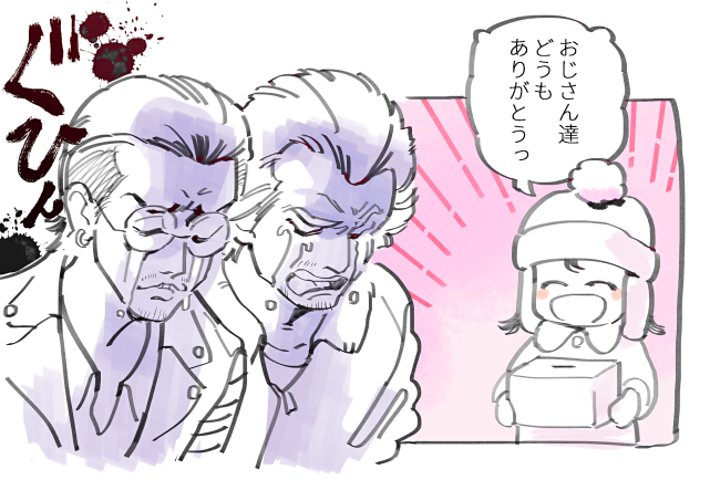 七奈(龍如)☆quiet followBLANK「俺、職探しする」「俺もマフィアのボスやめる」サブストーリーの募金少女で号泣してそうな足立さんと趙。サブストーリーに関るのは一番だけだから他のメンバーのリアクションを想像するのも楽しい。サブストーリー「マゾおじさん」は歴代龍如の中でも屈指の出来だった。 Tap to full screen (size:641x434).Repost is prohibited 七奈(龍如)TRAININGトミザワと山井今10章。いまいちメインストーリーにのめり込めないのは私だけだろうか。それはさておき、ナイトマーケットの戦闘で山井が加勢してくれたのはメチャ嬉しかった。最中トミザワだけが山井との連携攻撃が入ったんだけどコレってたまたまかなぁ。見た感じ山井一派ってそこまでアウトローでもないし、トミザワが一番に出会うのがもう少し遅ければ未来は変わってたかもしれない。 七奈(龍如)TRAININGドンドコ島に行けない今9章。舞台が異人町になったと思ったらまたハワイに戻ってきた。ドンドコ島に行くことができずとても寂しい。ガチャピンとムックと又吉さんはどうしてるかな…。今までガチャピンとムックについて特に意識したことなかったけど、けっこう可愛いなと思えるようになった。朝礼のとき「どーしよっかー」「がんばりましょー」とか喋ってるのが可愛い。 七奈(龍如)TRAININGCV:子安武人体験版の段階で際立っていたキャラ山井。用も無いのにバール(のような物)を持ち歩いてる時点でもう最高。よくよく見たらスーツの下シャツじゃなくてセーター?しかも肩掛けコートとか、さては冷え性だな(弱点が水属性でマジ草)子安さんが極2の飯淵役以来の出演でかなり嬉しい。良い声は何度でも聞きたいもんです。 七奈(龍如)TRAINING山井豊今6章。山井は桐生の衰えを見抜いた。世代交代したとは言えあの桐生が弱っていく姿を見るのは やっぱつれぇわ。それとは対照的にとにかく明るい一番。7に比べて一番の明るさが際立っているのはハワイの陽気のせいなのか、それとも私がまだ7のEDを引きづっているからそう感じるのか。…。そーだよなーあれから4年も経ってるもんなーだよなー。一番だって吹っ切れるよなー。一番が可愛いければそれでイイっか! 七奈(龍如)TRAININGスジモンスジモンバトルこと筋神が面白い。一気にプラチナランクまで上げた。スジモンの相性とか配置とか運とかアレコレ考えながら戦うのが楽しいね。とは言え クイーン戦は5回位やり直した挙句勝てた要因は結局運だったという。何がどーなるか分からん筋神、奥が深い。お気に入りスジモンは「金の虚像」固くて強くてキラキラでめっちゃイイ。(この絵はまだ途中) 七奈(龍如)TRAINING不二宮千歳今5章。令嬢なのに好みが庶民的なチーちゃん。好きなギャグ漫画が何だったのか気になる。それはさておき今日(2/10)やっと転職できるとこまで行った。マップを隅々まで歩いてみたくてずっとウロウロしてたらレベルがめっちゃ上がった。ちょっと寄り道しすぎたかな。揺らせそうな木を片っ端から揺らして、海を端から端まで泳いでいただけなのに。 recommended works あくあPROGRESS煌のOPが改めて可愛すぎるので年少トリオ描きたいねっていうラフ あんずDOODLE🌻 酔っぱらい あくあDONE梨花ちゃんスマイル にぱ~! あくあDOODLEサトシオンなでなで可愛いの図 tanoDOODLEこたつ寝イチと若 ゆら子DOODLE龍3終わったんですけど、峯の沼がこんなに深いなんて聞いてないです 信仰心と猜疑心と独占欲と孤独に塗れた男 ありがとうございました 2 tomoriDOODLEMonika :D※手書きブログより asyanbibuDOODLE 2 さわらDONE真島さんお誕生日おめでとうの絵🥳🥳🥳🥳誤字ってそう許して