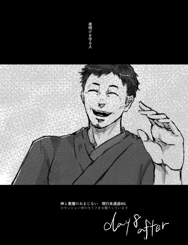 crow896☆こそフォロらくがき神と悪魔のおまじない 現行未通過❌自陣❌※見れるのはさかなさんとKPだけ他のひとおわってから完成を急いだため作画が荒いところがありますすいません_(:3」 )_こんなことがあったらいいなの幻覚自陣全員借りてますFA すべて表示(+8枚) タップで全画面(原寸:600x780)無断転載禁止 リアクションをたくさん送って応援しよう! よく使う人気おやつその他支払処理中 作者からのリプライ 気になる人をどんどんフォローしよう!☆こそフォロ crow896らくがき神と悪魔のおまじない 現行未通過❌自陣❌※見れるのはさかなさんとKPだけ他のひとおわってから完成を急いだため作画が荒いところがありますすいません_(:3」 )_こんなことがあったらいいなの幻覚自陣全員借りてますFA 9 crow896お知らせ※卓報告!クトゥルフ神話TRPG「 イタリャーナ・ヴィアッジョ!~美食編~ 」作:月野ルネ様KP:896PL:水無、りんむ、きなこもちPC:天毛来真軽羽かさね冴斎燈花ガブリエル・ゴベンダー食い倒れツアーしてきたよ!おつかれさまでした crow896お知らせ※卓報告CoCKPレス「もし、明日がくるなら」PL:きなこもちさん、896さんシナリオクリア!静テロ継続で遊んできました 色々お話できたね crow896お知らせ※卓報告!CoC「世にも奇妙な初詣」KP:きなこもちさんPL:コアラさん、ジェイドさん、アーナック初詣行ってきたよ今年もよろしくお願いします crow896お知らせエレオノーラちゃんと置き卓していました お疲れ様でした!俺の卓納めやCoC「服と面影」作:珠代ひがら様KP:896PL:色薄華さん 3 crow896お知らせあわせにいったよ ダンスしてるみたいでよいかんじクリマデートお疲れ様でした〜