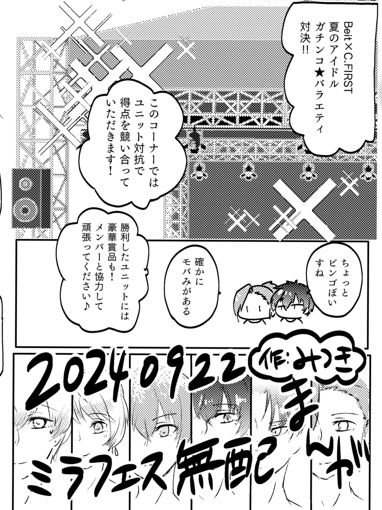 mtk1600☆quiet followMOURNINGミラフェス無配のBeit×C.FIRST、夏のガチンコ⭐︎バラエティ対決まんがです。3日で描いたので表記ブレや作画ミス許してほしい。 #SideM show all(+7 images) Tap to full screen (size:768x1024).Repost is prohibited Let's send reactions! freqpopularsnackothersPayment processing Replies from the creator Follow creator you care about!☆quiet follow mtk1600PROGRESSみのりと恭二付き合うまでのお話。以前出した春風の続き。11月ミラフェスの予定です。前にらくがきした漫画の手直し部分です。 10 mtk1600PROGRESS8/23チャレのサンプルです。リコちゃん中心イラスト本(ドトリコ)※再録あり20ページ/A5/全年齢/フルカラー…の予定です。 6 mtk1600DOODLEちょっとエッ…すぎるなと思い没にしたリコちゃん。イラスト本は健全(?)なので、もう一冊出せたらそれのノベルティとかにしたいです… mtk1600DOODLE🔑y/n1枚目:普通のミダキジ2枚目〜:ミダキジ♀えっちなの 5 mtk1600MENU🔑R18? y/n6/15「今夜、シアタールームで 星願2025」頒布予定ミツフル3P本((花+燈夜)×雪斗)サンプルです。めちゃくちゃペラペラ本ですみません;;A5/12ページ/成人向け/100円(会場価格予定) 5 mtk1600PROGRESS6月の表紙と最初の方…下書き。ミツフルの3P本になるそうです。ペラペラです。⚠️R18 🔑y/n⚠️ 3 related works つくね子PAST ご飯ヶ竹吾郎DONEpkmnのエリトレの服 ぽーらDOODLEねむる翼mini ねねこDOODLE #SideMせいじちゅん…… ご飯ヶ竹吾郎DONEカラーパレットでリクいただいたもの ユキニョDONEクリスマス前半戦お疲れ様でした~ NRGayaDOODLEコキュートス🤔 うしおDOODLE締まったタイを緩める~ のフレーズが頭から離れなくなったので描きました ユキニョDONEクリスマス前半戦お疲れ様でした~