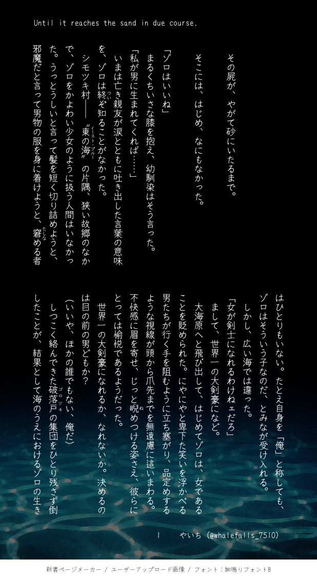 やいち☆quiet followDONE※けんしさんにょたいか・海賊設定・見た目や態度や口調や服装は原作沿い・胸のサイズは絶賛協議中・おおきくてもちいさくても美味しいですねローゾロ未満からはじまるロゾ♀。時系列はゾウ出航直前からワノ国へいたる道中。続きが書けたら外科医→剣士なお話になる予定です。できればエロまで書きたい所存。 ##ローゾロ ##やがて砂にいたるまで show all(+7 images) Tap to full screen (size:618x1132).Repost is prohibited Let's send reactions! freqpopularsnackothersPayment processing Replies from the creator Follow creator you care about!☆quiet follow やいちDONE以下の注意書きに目を通し、用法容量を守って楽しくお読みください。・ままならない男の話。・書いたひとはGQXと鉄オル以外のガンダム作品未履修です。・シャリシャアのひとが書いているのでそういう出汁が出ているかもしれない。・エグザベくんは「コモリ少尉とジークアクスのパイロットの言動が影響したんだろうなあ」と思ってます。・君もだよ。 11 やいちDONE・第25回杉尾ワンドロ&ワンライのお題より『年の瀬/投瓜得瓊(とうかとくけい)/前世/来世』をお借りしました。・Webオンリーでまとめた『写真家尾形シリーズ』の番外編第二弾です。シリーズのまとめはこちら。https://privatter.me/page/675e581222874 9 やいちDONE・第24回杉尾ワンドロ&ワンライのお題より『こたつ/横顔/冷たい手』をお借りしました。・Webオンリーでまとめて公開した『写真家尾形シリーズ』の番外編です。シリーズのまとめはこちら。https://privatter.me/page/675e581222874とてもぬるいですが性描写がございます(未挿入)高校生を含む十八歳未満の方は閲覧できません。18↑?(yes/no) 9 やいちDONEsgo非公式webオンリー『愛し傷の恋語り』イベント内のワンドロライからお題をお借りしました。『愛しい/傷/恋語り』シリーズの最終話となっております。前回はこちら。https://poipiku.com/210784/11129960.html 10 やいちDONE第三回離坤ワンドロワンライのお題より『船/盃/空腹』をお借りしました。 3 やいちDONE第23回杉尾ワンドロ&ワンライのお題より『たい焼き/隣人/恋飯』をお借りしました。現パロ。前回の続きです。https://poipiku.com/210784/11103689.html 6 recommended works ゆずきDONE腐術/五伏 ふらわー(flower)DOODLE五伏③ 榛瀬DOODLE【五伏】カラー練習 y_morning_gloryDONE支部に投稿した五伏ログ②、こちらにも残しておきます。 51 みなみMAIKING【WIP】バニーボーイめぐ tubutubu_ohagiDONE五伏版ワンドロワンライ第5回『犬』♡閲覧は高卒18歳以上からがお約束♡18歳以上ですか?yes/no lamain1004DONE特にエロくはないけれど肌色多めのイラスト2点。五伏とうさめぐ(捧げ物)です。 2 tubutubu_ohagiDOODLEしょめぐすけべ詰め合わせ⚠️背後注意⚠️🔞閲覧は高卒18歳以上からがお約束🔞約束出来ますか❓ 11 だだだDONE悟いろ35話からの怒涛の展開半端なかったね……36話でフレンディがノーモーションのヘルプキラリンアニマルスワンで羽生やして救出したの最高だったマロありがとうございました!