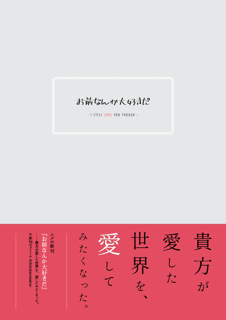 suz☆quiet followTRAINING診断メーカーで表紙をつくる練習 show all(+3 images) Tap to full screen (size:746x1058).Repost is prohibited suzTRAINING秋の新刊ロゴ試行錯誤中 suzMOURNING没ったデザイン、納品終わったらギャラリーに載せよう 5 suzDONE25日にアップした最終回3周年記念絵 suzPROGRESS背景を書き込んで、色調を調整して、顔を直して、進んだはずなのに完成はまだ見えない suzPROGRESS目を書き込んだ、あとは色調とか整えた25日に間に合いたい suzPROGRESS背景ちょっと進んだ。どうにか雰囲気は見えてきただろうか recommended works しらたまPASTあとがき用に書いた女子たち。原稿中にも関わらずBbSプレイしてラスエピまでクリアしてたようだ。(2010年2月上旬頃)#キングダムハーツ #王国心 #KH#BbS #Days #アクア #カイリ #ナミネ #シオン #女の子#アナログ #スクリーントーン azutyaDOODLE後半駆け足過ぎて、落書きが間に合わない!今朝の早起き落書き。いよいよ最終章?!#KH3 #アクア #リク azutyaDOODLE相変わらず、女の子がビミョー。#キングダムハーツ #kh3 #アクア #カイリ 桔子kikko*DOODLE るーなPASTキンハ女子!めっちゃ愛を込めて描いてツイッターにあげたらタグ無しでも沢山反応頂いた思い出のイラストです suzPASTてすてす 2 suzMAIKING髪下ろしブルエン&ツインテ美優ちゃん。葵ちゃんにウエディングベールをつけたい 2 suzMAIKINGリコデ・光組、ドラゴンの翼を描き入れたいけどサイズ感がわからない・炎組、火柱と涙はこれから描く・地組、光組との背景の差別化に困ってる・Aiちゃんまだ下書きあと英語サブタイの前置詞が逆なのはちょっとこだわり……(*´∀`*)(1話目は『〜より』なのにFromではなくInto)(4話目は『〜に』なのにOnじゃなくてFrom) 9 suzPROGRESSふえた 3