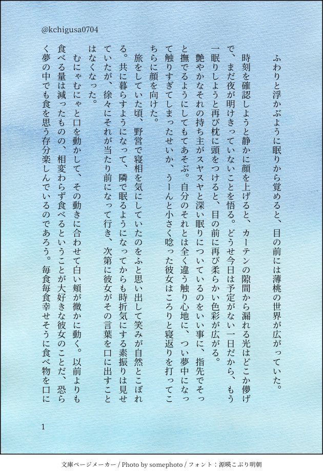 ちぐさ☆quiet followDONETOARISE/アルシオエンディング後。穏やかな朝のアルシオ。多分300億万兆番煎じだと思うのですが、好きなシチュエーションなので今回も書きました。 show all(+2 images) Tap to full screen (size:630x928).Repost is prohibited Let's send reactions! freqpopularsnackothersPayment processing Replies from the creator Follow creator you care about!☆quiet follow ちぐさDOODLE※※※R-18作品です※※※※※※未成年の方の閲覧はご遠慮ください※※※以前に書いた『分け合う罪』の加筆修正版。「媚薬を10本飲むまで出られない部屋」に入ってしまった二人の話。めちゃくちゃ書き途中です。※カガリ優位というか攻めっぽい?雰囲気も若干あります(ぬるめ)パスワードはエメナイ会場に載せています。 14 ちぐさDOODLE2025/7/13 星に願いを 2025 -day2- 明日のかがり火と共に 星願2025 新刊②🔞パート ちぐさDOODLEアスカガワンドロに参加させていただいたもの。お題【桜】 4 ちぐさDOODLEついったに上げてたやつ 貧乏性なのであっちにもこっちにもらくがきカガリリフレインアトリウム(SideM)聴きながら描いてた ちぐさDOODLE以前に書いた『夢の中であなたと』の加筆修正版。夢の中で”カガリ”について考えるアスランのお話。ちょっと暗めトーンですが最後はハッピーエンドです!※ちょっとモブ出ます※パスワードはエメナイ会場に載せてます。 9 ちぐさDOODLEアスカガ/「もちろん結婚式でも泣きましたが?」診断メーカーより。千草さんには「大人は泣かないものだと思っていた」で始まり、「ああ、もうやってらんない」で終わる物語を書いて欲しいです。できれば3ツイート(420字)以上でお願いします。https://shindanmaker.com/801664 3