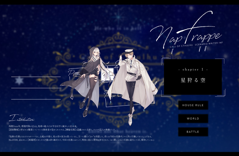 junko_1026☆quiet followMEMOCoC『 Napfrappe 』KP:やけくそ乙女さんPC / PLHO Star :Canopus=Ward / りりりりさんHO Moon:No.0708 / じゅんこ- Chapter 1 終了 - Tap to full screen (size:5822x3819).Repost is prohibited Let's send reactions! freqpopularsnackothersPayment processing Replies from the creator Follow creator you care about!☆quiet follow junko_1026MEMOCoC『 しんでなんかないよ 』⋆┈┈┈┈┈┈┈┈┈┈┈┈┈┈┈⋆KPC / KP 空智 ネネ子 / りりりりさんPC / PL 黒瀬 透吏 / じゅんこ⋆┈┈┈┈┈┈┈┈┈┈┈┈┈┈┈⋆END ▸︎▹︎▸︎ 1「おはよう、ネネ子」 junko_1026MEMOCoC『うちゅう!』⋆┈┈┈┈┈┈┈┈┈┈┈┈┈┈┈⋆KPC / KP 黒瀬 透吏 / じゅんこPC / PL 空智 ネネ子 / りりりりさん⋆┈┈┈┈┈┈┈┈┈┈┈┈┈┈┈⋆- 両生還 -「いつか、気が向いたらな」 junko_1026MEMOCoC『 ソープスクール 』KP:じゅんこSKP:野川PC / PLHO1:松下 泉 / 831さんHO2:落田 太陽 / たろさんHO3:愛洲 薫 / 紫陽花さんHO4:鳳 旋華 / マチオさんEND ▸︎▹︎ C素敵な物語をありがとうございました! junko_1026MEMOCoC『 冬に夜逃げは寒すぎる 』⋆┈┈┈┈┈┈┈┈┈┈┈┈┈┈┈⋆KPC / KP 一之宮 真命 / りりりりさんPC / PL 千ヶ崎 結月 / じゅんこ⋆┈┈┈┈┈┈┈┈┈┈┈┈┈┈┈⋆END ▸︎▹︎ A 「こういうのも悪くないかもね」 junko_1026MEMOCoC『 悪魔は最期に微笑むか 』⋆┈┈┈┈┈┈┈┈┈┈┈┈┈┈┈⋆KP:たろしさんPC / PLHO1:日辻 羽迦 / ラジオさんHO2: 天喰 千隼 / じゅんこ⋆┈┈┈┈┈┈┈┈┈┈┈┈┈┈┈⋆END ▸︎▹︎▸︎ 1「よく頑張ったな」 junko_1026MEMOCoC『ムーンエラーアウトサイダー』KP:ただのさとうさんPC / PLHO1:水無木 瑛汰 / 真夏HO2:夏目 茉穂 / じゅんこHO3:真永 梔笑 / 乙女さんHO4:比良塚 綸太郎 / asahiさんEND ▸︎▹︎▸︎ 全生還「私頑張るよ」