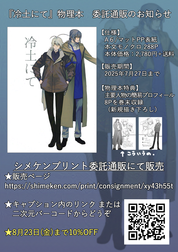 一次創作小説『冷土にて』物理本の委託通販を始めました。