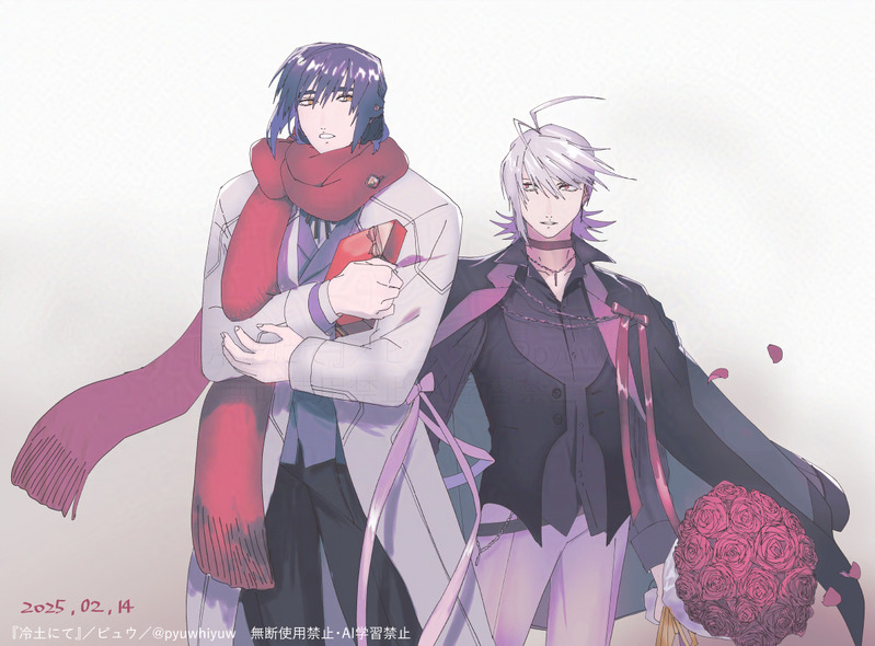 一次創作の遼遠と雪路。バレンタインデー風。