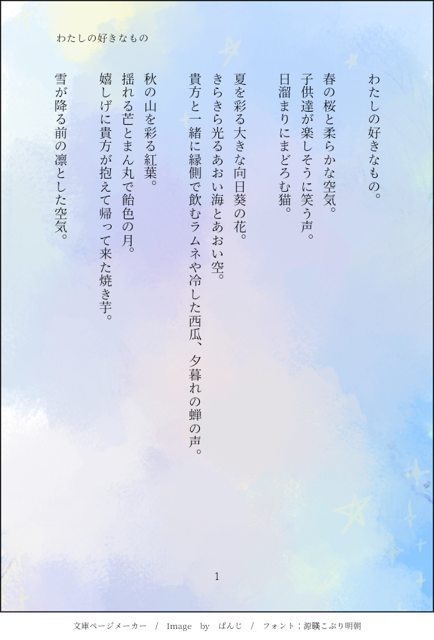いち(ノ)•ω•(ヾ)☆quiet followMOURNING私が書く尾勇は炭酸の抜けたサイダーみたいだと何時も思うのですが、今回もそんな感じです。概念尾勇。相変わらずポエミー。(以上現場からお送りしました。) show all(+4 images) Tap to full screen (size:630x928).Repost is prohibited Let's send reactions! freqpopularsnackothersPayment processing Replies from the creator Follow creator you care about!☆quiet follow いち(ノ)•ω•(ヾ)MOURNING正月に交換用で描いたのを格納。普段描かない二人でした😊目に五月蝿い色で大変申し訳無かったなの気持ち。 2 いち(ノ)•ω•(ヾ)TRAINING初めて描いた、和田さん。目がデカくなるのはすみません…癖です。(真顔)グラデ便箋の呪いに罹って居るので和田さんもグラデ。 2 いち(ノ)•ω•(ヾ)DOODLE夏の小さな平之丞さん。 いち(ノ)•ω•(ヾ)TRAININGしあわせを考えて居た筈なのにこうなった。勿体無いので…おゆ、死ネタ。現パロ、血、グロ(?)現パロですが暗いです。 7 いち(ノ)•ω•(ヾ)MOURNING私が書く尾勇は炭酸の抜けたサイダーみたいだと何時も思うのですが、今回もそんな感じです。概念尾勇。相変わらずポエミー。(以上現場からお送りしました。) 5 いち(ノ)•ω•(ヾ)MOURNING昨夜眠れ無くなって書いたものを手直ししました。久し振りの、おゆ風味。ぽえみーひゃくのすけが居ります。眠れ無くなって書いた結果が寝坊なので本当に阿呆だと思いました。 3 recommended works 無 月DOODLE過去ゆうむい集! 15 JunnyYumiDOODLE18+? (yes/no) 猫のしっぽDONE茶柱さん誕生日おめでとう!🎂これからもよろしく! tamuDOODLEtest 3 ほや🐟DOODLE土井センセと天鬼もっしゃ✏️ たらすずDONEモブ要素あり。お気をつけください 2 hxp147258DOODLEエムシーエム欧米風カード収納iphone16/15カバーhttps://foolcase.com/goods-mcm-iphone-15promax-case-236.html ハッカミコット /ヤビ💪SPOILERParanormal Crime無印 ネタバレNPC集合絵 5 4646__DolphinSPOILERFRaTRICiDE げんみ❌️HO1なら🙆♀️りょちょのらくがきわよ〜〜〜〜〜〜