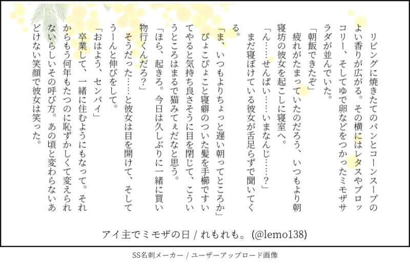書き手の名前が碧と、れもれもと混在してますが、どちらも中の人は同じです。れもれもは雑多垢および自メインキャラの名前。