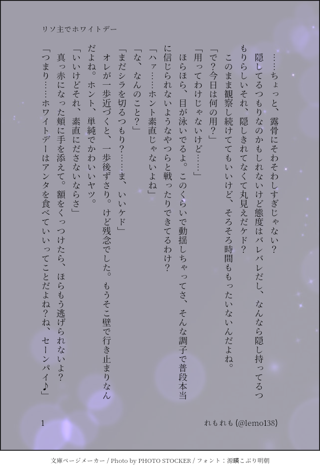 書き手の名前が碧と、れもれもと混在してますが、どちらも中の人は同じです。れもれもは雑多垢および自メインキャラの名前。