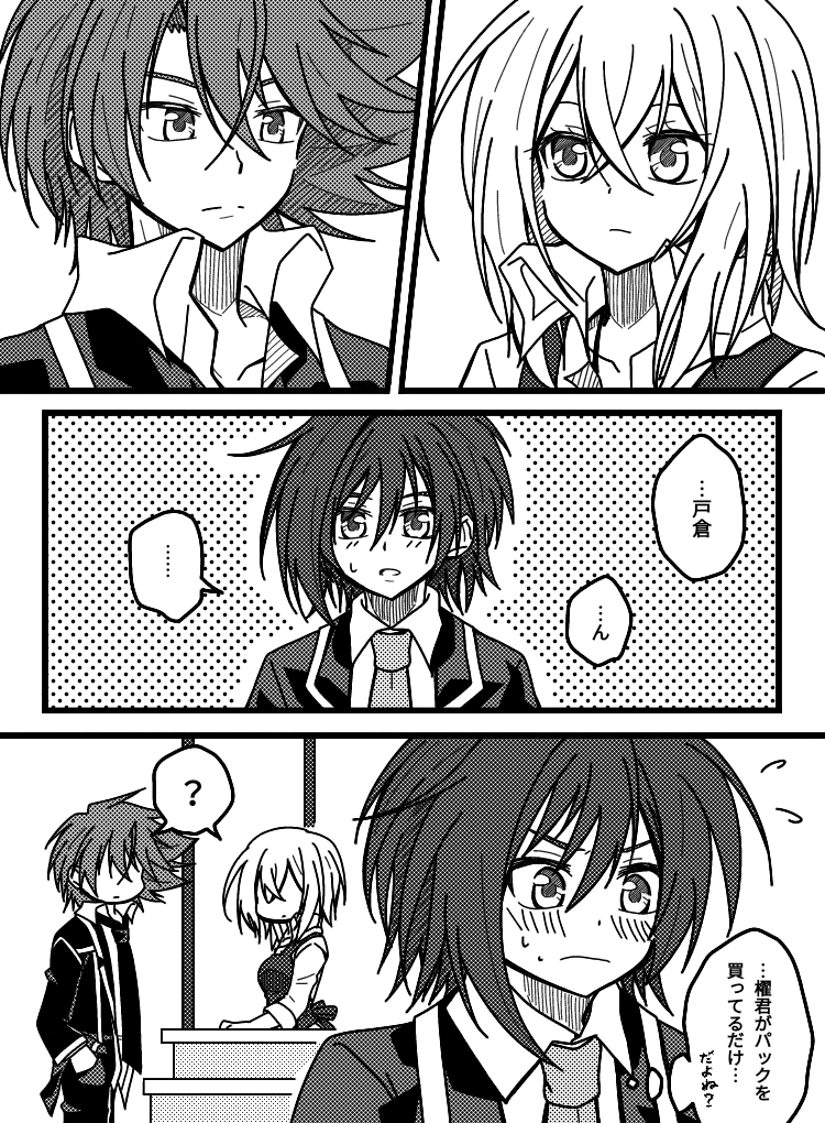 櫂ミサ(当人達にとっては普段のやり取り)と、2人から漂う雰囲気が気恥ずかしいアイチ君