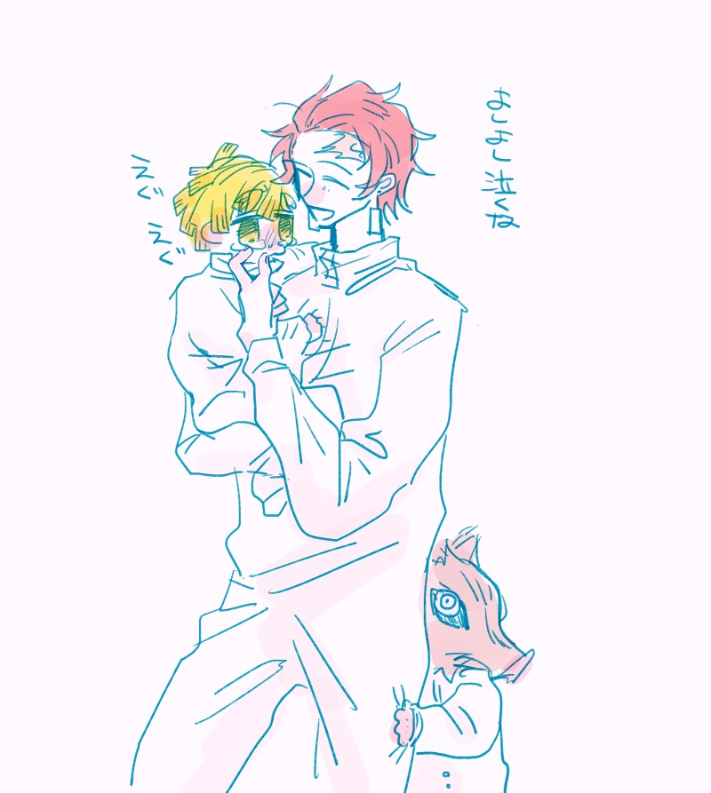 ご都合血鬼術で鬼の頸は斬ったんだけど幼児になってしまった二人とすぐ抱き上げてしまう長男の図。いのすけは抱っこよりおんぶが好き。最初兄が取られたと勘違いするも長女として二人を弟のように接するねずちゃん、小さくなったいのすけとねずこが手を繋いでよちよち歩いている姿がよく見られ(探検散歩)善は行動するより悔しくて先に泣いてしまう