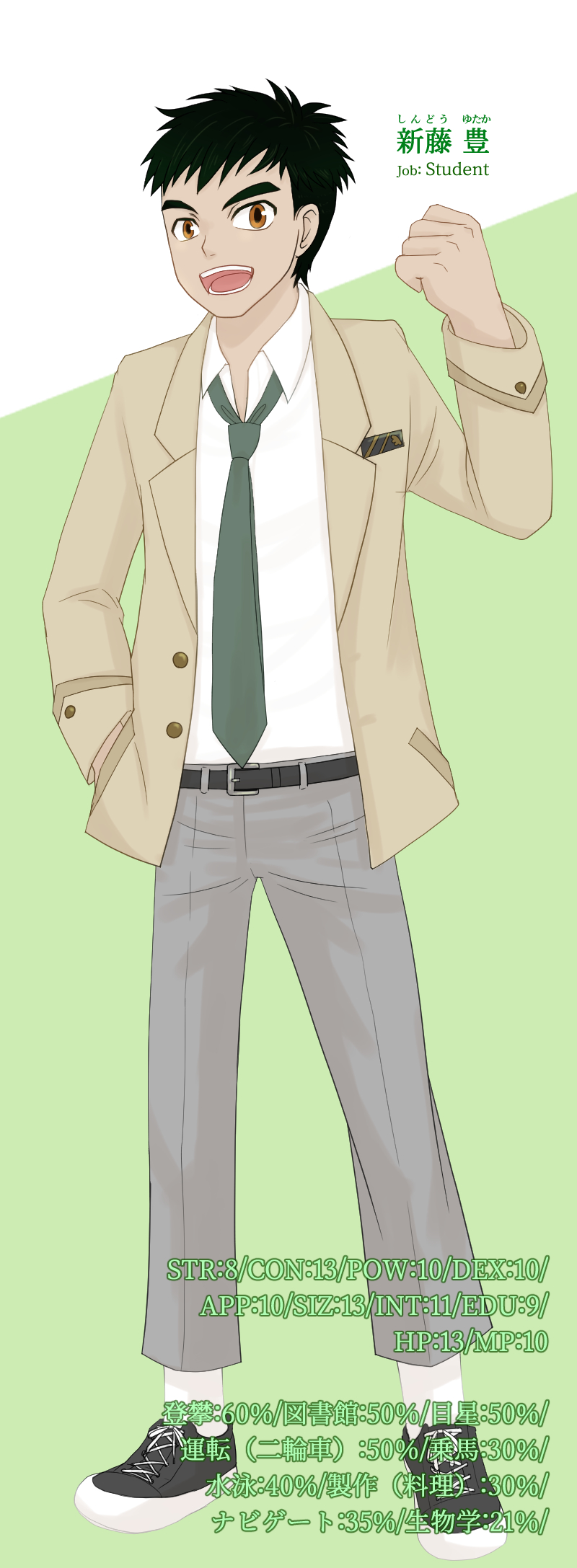けいの☆quiet followDONEゲーム部所属の高校三年生。今の学校へは、一年の時に転校してきた。それまでは田舎の方で暮らしていて、祖父母の経営している牧場によく遊びに行っていた。実は馬に乗れるが、都会じゃ披露する機会が全くないので。おそらく信じてもらえてない(気がする)ピザ配達のアルバイトをしてるよ。 ##CoC探索者 Tap to full screen (size:800x2175).Repost is prohibited Let's send reactions! freqpopularsnackothersPayment processing Replies from the creator Follow creator you care about!☆quiet follow けいのDOODLE思考をすべて放棄した落書き 5 けいのDOODLE香水穂香(かすいほのか)作家作り方が分かって調子に乗ってしまった 3 けいのDOODLE鶴見大和(ツルミヤマト)職業:登山家 3 けいのDONE 2 けいのDOODLE西葉 探索者仕様。ステ、技能共に一部の卓仕様。大変ガラが悪い化け狐。 2 けいのDOODLEカラーラフ糸谷 環(いとや たまき) 落語家顔こんな感じ。服はもうちょい 3 recommended works shinore_ASDOODLE今年もニシハ君の勝ち 3 shinore_ASPROGRESSいい夫婦の日終わってますけど/(^o^)\はやめに色塗り終わらせたい shinore_ASDONE大遅刻でした いい夫婦の日れやにし shinore_ASDOODLE shinore_ASDOODLEみつかった 2 shinore_ASDOODLEお迎え shinore_ASDOODLEつよいまくら kreidxprizDONEI'm sorry, I'm not used to draw old man in a suspicious wayhere's your thirst reward for #EVILRICKSWEEP 庭_1231DOODLEユキモモの日