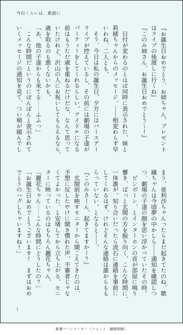 長月 @_karni_11 ミリオンライブ中心・ほぼ百合担当→歌織・志保・朋花・風花描くもの→麗花×このみ、P♀×莉緒、まつり×朋花 等 ☆quiet follow Yell with Emoji Tap the Emoji to send POIPOI 265