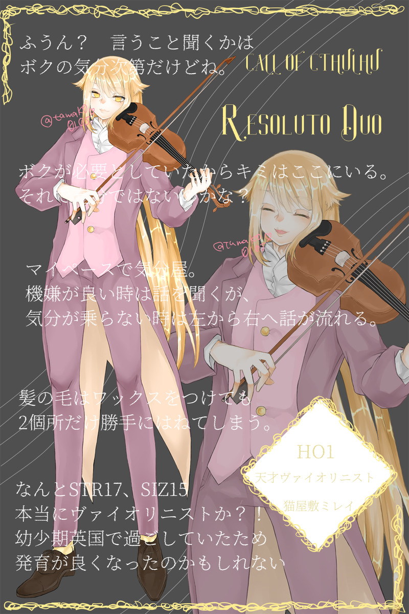tamako0105☆quiet followDONEリゾデュに連れて行くHO1天才ヴァイオリニスト!STR17とSIZ15、格闘家になった方が良かったんとちゃう?! みたいな体格である。デッカデッカ猫🐈 show all(+6 images) Tap to full screen (size:1000x1500).Repost is prohibited Let's send reactions! freqpopularsnackothersPayment processing Replies from the creator Follow creator you care about!☆quiet follow tamako0105DONE魔女天使コンビでレナトゥスの弾丸行きました! 大変な目にはあったけど、写真撮ったりお土産一緒に選んだりして楽しかった~!!😊💓 tamako0105DONEフラトリに連れて行く寮長のオリバ~🍀 どんな感じになるのか楽しみ😊💓 7 tamako0105DOODLE自陣抱っこチャレンジ🥳ありふれた今/かいマホ/ソプスク/ディセブラ/てんらく/ドリガラ/のばのば/パラクラ/リゾデュ/レプ葬/塔葬の国/同居人/紲/こげぬ 17 tamako0105DONECoC6版『ふたりで温泉に行こう』ワーイ👐 詩くんと旅行だ~! イェーイ✌ 8 tamako0105DONE留守番番に連れて行くギャル😉🌟派手めな外見で自分守ってる、結構境遇が重たい子! 3 tamako0105DONECoC6版『拝啓、贖イ郵便局の皆様へ』に連れて行くHO3新人! 楽しみ~😊💓 7 recommended works あたしDONEえいせき 7 kaitotodattuDONE筑本 八城*社畜【初卓*海バス】クソデカボイス×光属性の社畜。とあるブラック企業の営業職。入社三年目だが病む気配は無いし洗脳もされていない。肉体的にも精神的にも強い人。cvイメージは福潤。 4 をのをDONE須賀 秋津(27)作家!男!「血は歯車のように」に行ってくるぜ 2 azuma_sPASTインセイン「ワンナイト・ラブをあなたと」をHO1で参加した、一時的新春特番コンバート庭師チーフ、小嶺です※このシナリオのHO1は起きたら着衣が乱れていて巨乳になります※公式シナリオのトレーラー通りです※公式が病気 19 TRPG1818MEMOヤドリギ 夏 5 ayano251MEMO吾真口嘉礼 Lonely8239MOURNING昔日の残影 PC:見寺太陽 2 しおんぬDONEあいわなびー!立ち絵RTAでした……なんとか間に合いましたぜ。今回は和風!! 2 ごーくん娘DONE庭師は何を口遊む HO3 刈谷楽秀(かりやがくしゅう)名前の由来…インテリゴリラなのでがり勉、まじめちゃんっぽい名前にしたかった活躍しなかったクリティカル、使いたくなかったファンブル 9