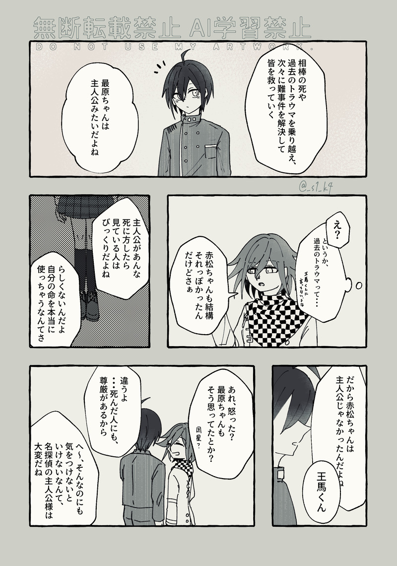 そうか☆quiet followTRAINING救われた内の一人原稿の描き方を友人から教わったのでそれの練習でした。赤松楓に救われたのは、最原だけじゃないんだよなぁ…。 ##論破 show all(+1 images) Tap to full screen (size:2032x2896).Repost is prohibited Let's send reactions! freqpopularsnackothersPayment processing Replies from the creator Follow creator you care about!☆quiet follow そうかMOURNING人力用に描いたものたち 3 そうかDOODLE※NDRV3 腐(王最)※映画パロ風ありあいぱよくんを買ったのでそれの練習 5 そうかMOURNING※NDRV3 腐(王最)0706にお~さい絵チャを開催したのでそこで描いたもの皆の麗しいお~さい見られたし素敵な線画塗れたし合作もできたし、大満足でした😊 5 そうかDOODLE絵チャ含むらくがき久しぶりにわたがしを食べました。 3 そうかTRAINING救われた内の一人原稿の描き方を友人から教わったのでそれの練習でした。赤松楓に救われたのは、最原だけじゃないんだよなぁ…。 2 そうかDOODLE※NDRV3 腐(王最)通話中に単語のお題を出してもらった落書き「猫」と「リボン」 2