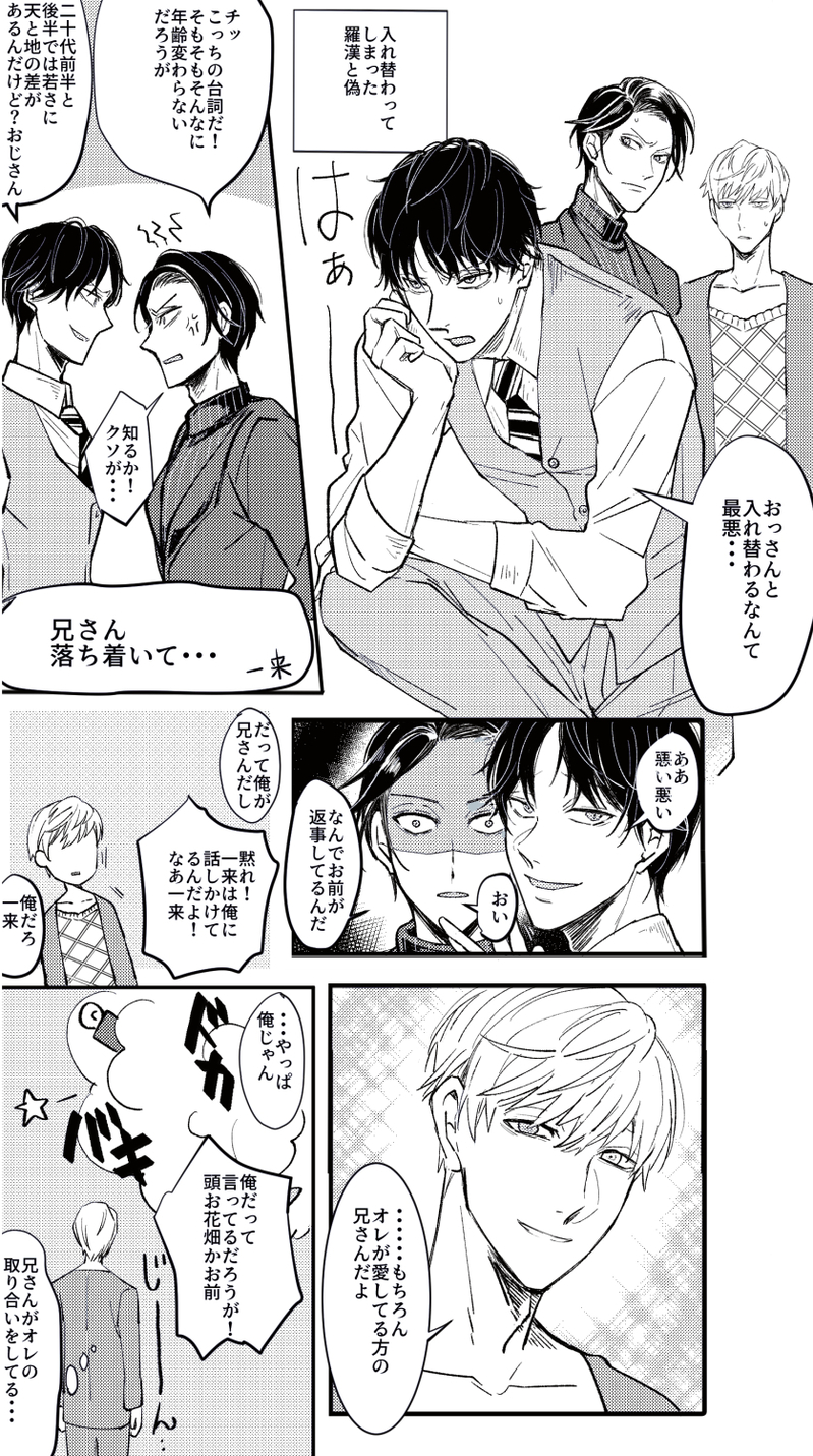 羅と偽くん入れ替わりネタです。