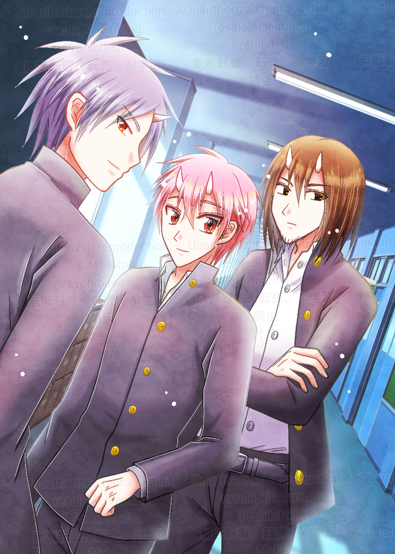 オリキャラ白夜(左)、桃元(真ん中)、一茶(右)