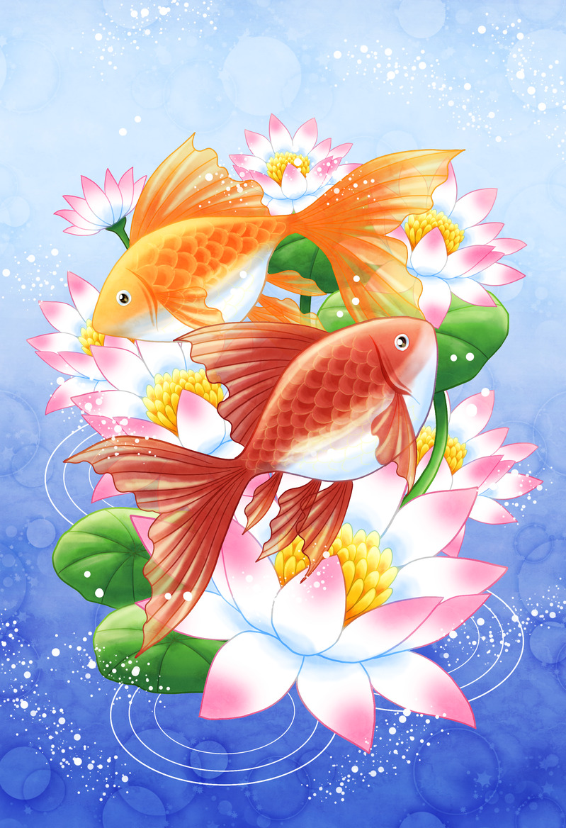 金魚と蓮の花