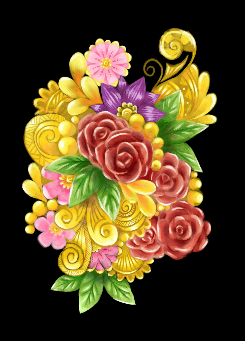 オリキャラの鬼や花、魚や風景絵など雑多に描いています。