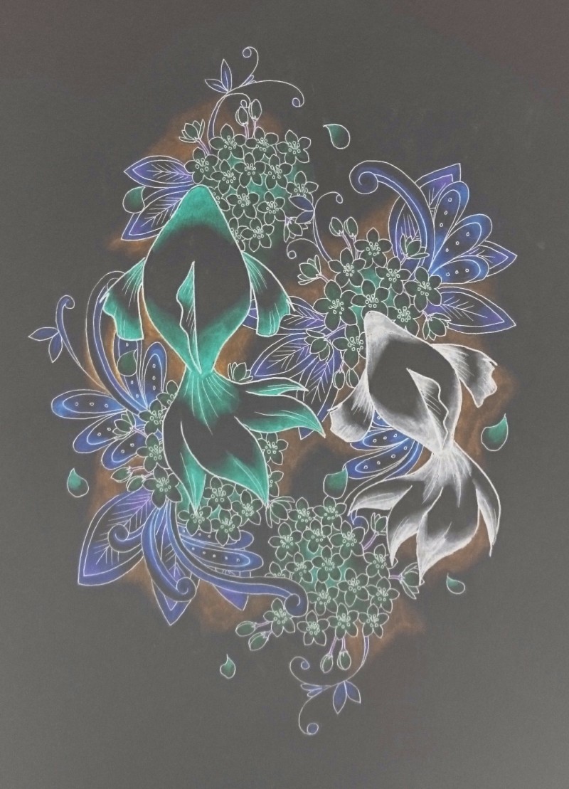 オリキャラの鬼や花、魚や風景絵など雑多に描いています。