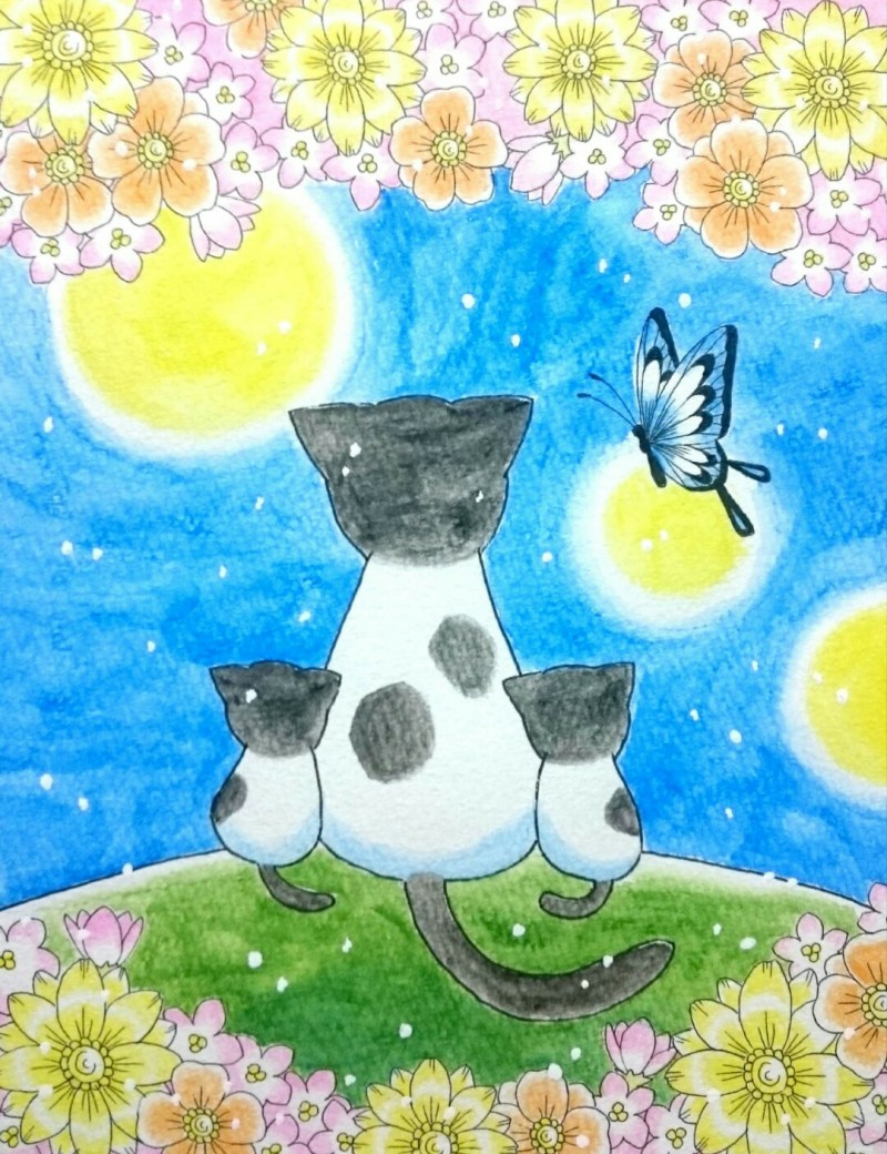 オリキャラの鬼や花、魚や風景絵など雑多に描いています。