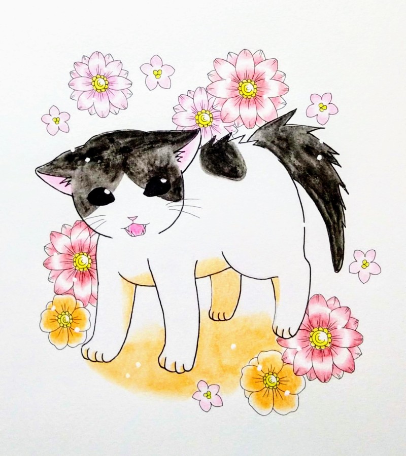 オリキャラの鬼や花、魚や風景絵など雑多に描いています。