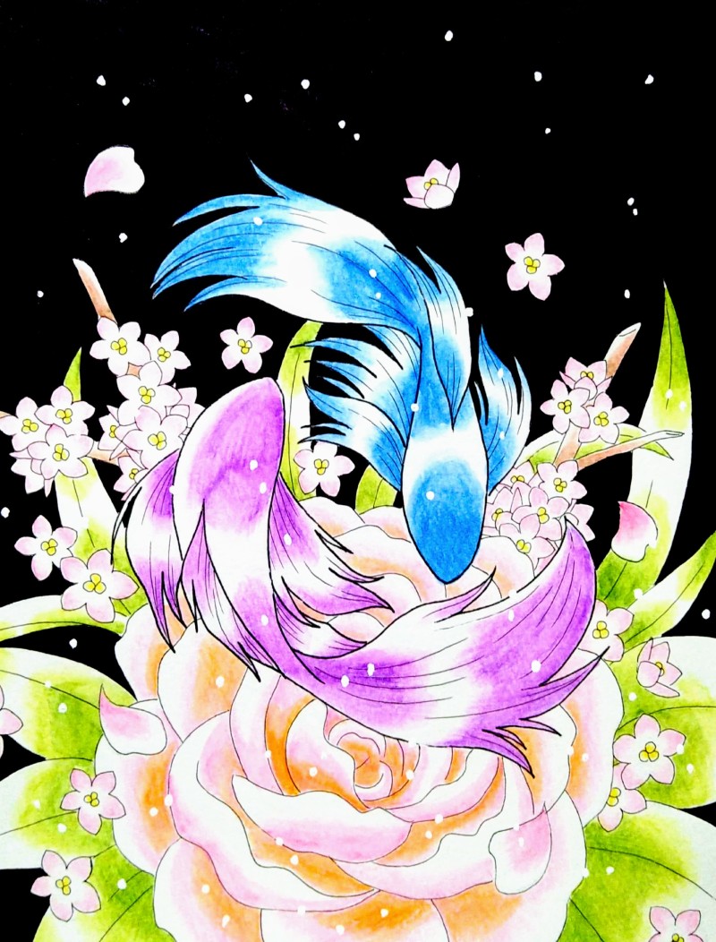 オリキャラの鬼や花、魚や風景絵など雑多に描いています。