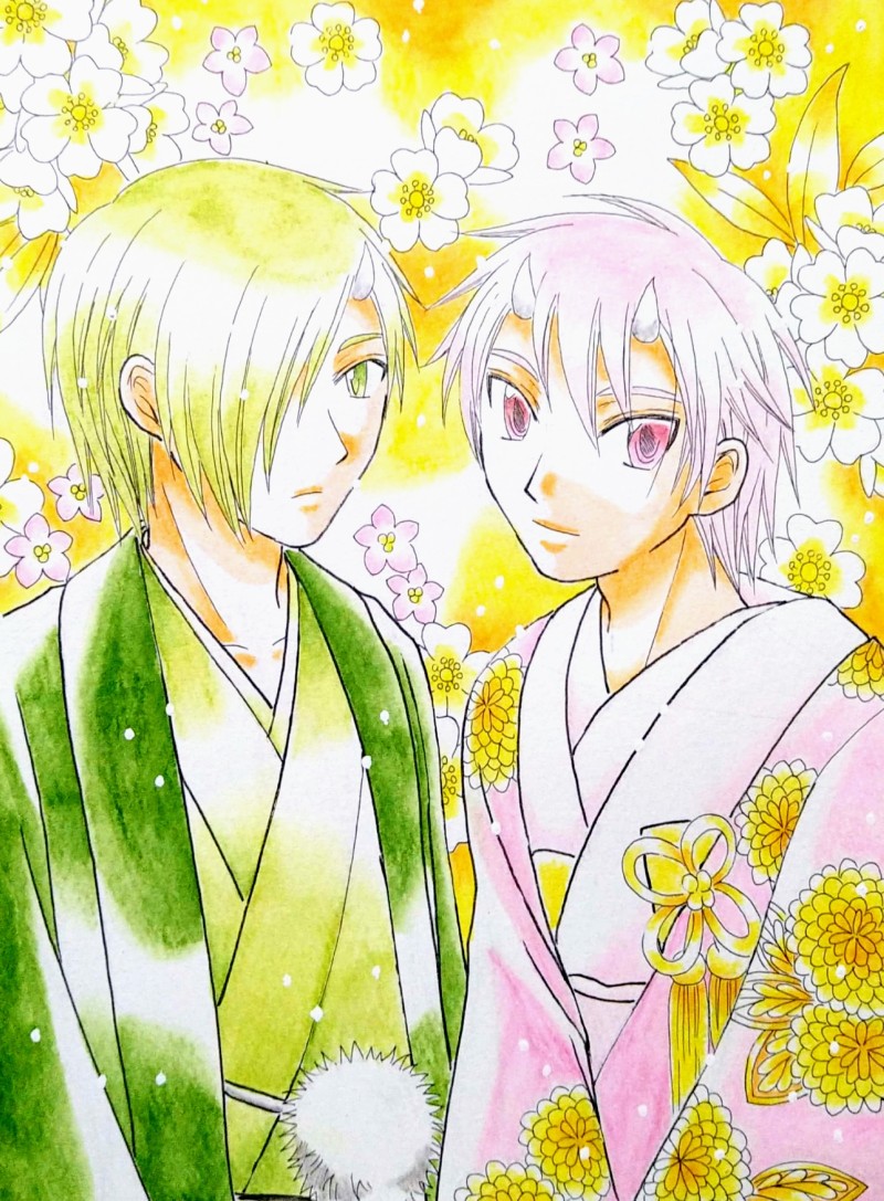 オリキャラ緑鬼と桃元。