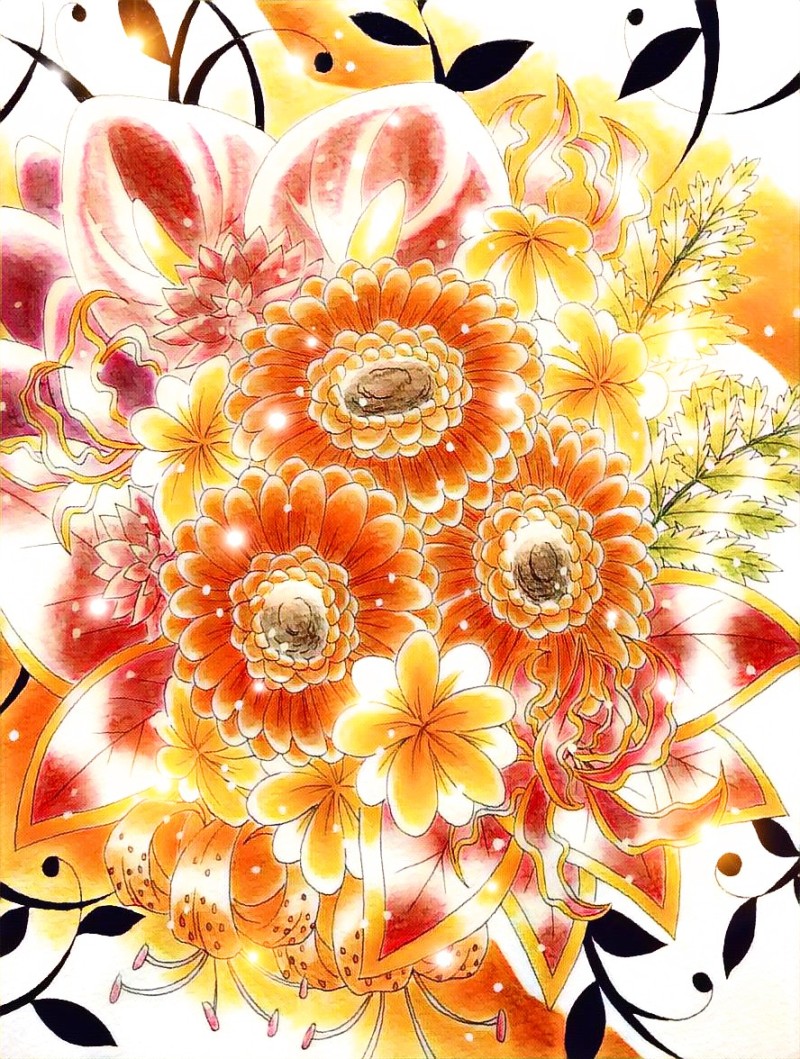 オリキャラの鬼や花、魚や風景絵など雑多に描いています。