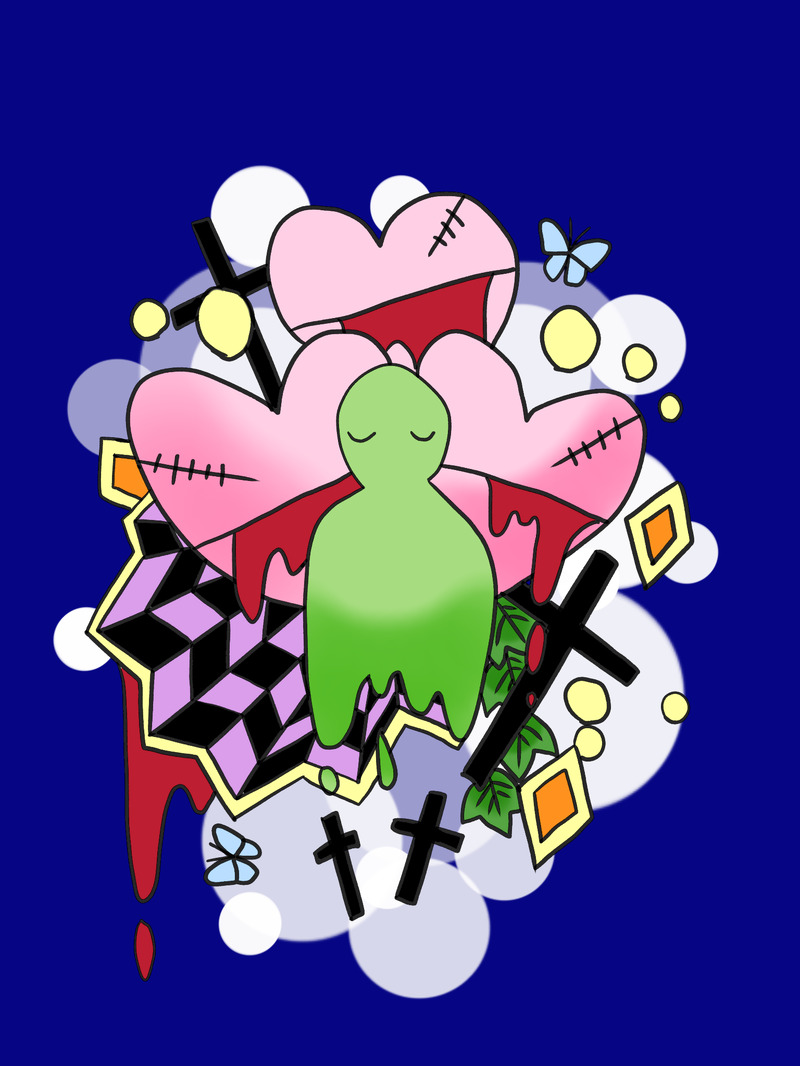 オリキャラの鬼や花、魚や風景絵など雑多に描いています。