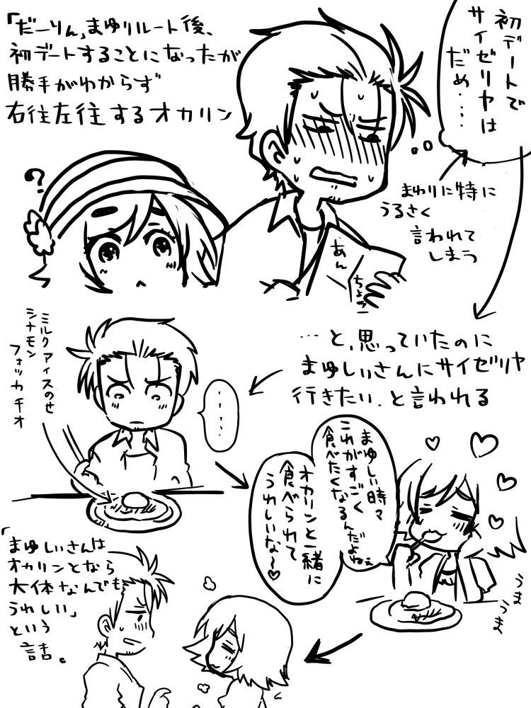 ななほう☆quiet followMOURNINGまんがにしようと思っていたけどボツにしたネタ Tap to full screen (size:750x1000).Repost is prohibited Let's send reactions! freqpopularsnackothersPayment processing Replies from the creator Follow creator you care about!☆quiet follow ななほうDOODLE「まゆしぃの眉毛を舐めたい」というコメントをもらったので描きました 2 ななほうSPOILERDDLC+感想絵 ネタバレあり ある意味サヨリ夢絵 5 ななほうDOODLE童貞を〇すセーター ななほうSPOILER完二と直斗とカプ厨のときお(真エンド描写あり) 2 ななほうDONEエッ…の時女の子の腰掴んでるのいいよな 2 ななほうDONE230603 pictSQUAREで開催の男女CPオンリー「第5回ラバーズ・コンチェルト」にて公開のおかまゆSS(全年齢)です。オカリンの実家の青果店にテレビの取材がくる話。執筆にあたり、AIのべりすとを併用しています。燃える看板娘俺の幼なじみは今日も甲斐甲斐しく働いている。 「へーい!いらっしゃいいらっしゃい!今日はね~、旬のキャベツが入ってるよ!柔らかくて美味しいよぉ!」 「まゆりちゃんが言うなら間違いないわね、いただこうかしら」 「まいどあり~!オカリン、1つおねがい!」 俺は店の棚からキャベツを取り出して袋に入れ、まゆりに手渡す。 「まいどあり」 「ありがとオカリン、はいどうぞ!」 まゆりは流れるように常連のおばさまから代金を受け取り、商品とおつりを渡す。別のおばさまから大根を半分にしてほしい、と言われれば店に据え付けられている包丁を振るって一刀両断にする。 「はーい!いくよ〜!危ないから離れててね!」 ガンッ! ザクッ! キャベツだろうがかぼちゃだろうがパイナップルだろうが、いかなる青果もまゆりの前ではあっさりと客の注文通りに分割されていくのだ。まるで豆腐でも切っているかのように。 6744
