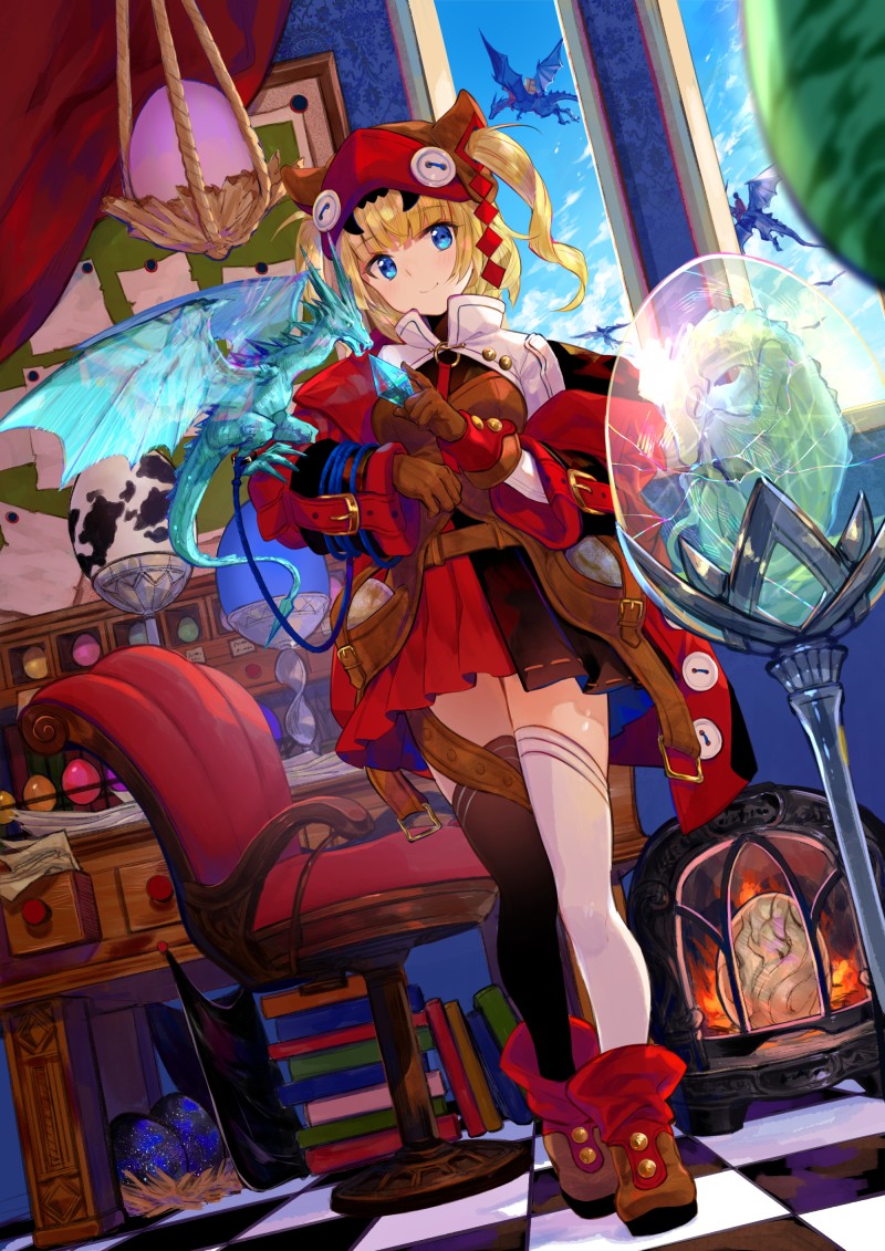 奥に青空を描くと一気に開放感が出ますね。空には大型のドラゴンを配置して、この世界にはいろんなサイズのドラゴンがいることを表しています。