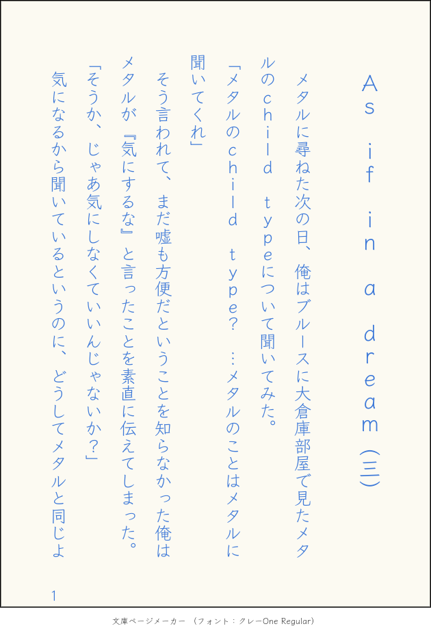 kaichi_mb☆quiet followPAST鋼青ss2-3エアー語りの続きブログからお引っ越し #鋼青 steelGreen show all(+17 images) Tap to full screen (size:630x928).Repost is prohibited Let's send reactions! freqpopularsnackothersPayment processing Replies from the creator Follow creator you care about!☆quiet follow kaichi_mbDOODLE散文バレンタインその2設定気にしない方向け。 2622 kaichi_mbDOODLEバレンタインにあげたかった散文その1鋼青シリーズとは別世界線。去年ボツにしたものを加筆修正。 3764 kaichi_mbDONE鋼青ss3章11-2*~**間の仲直り×××シーンのみ。鋼が変態なので自己責任でお願いします。読まなくても大丈夫。 2155 kaichi_mbDONE鋼青ss3章11-2青視点*~**の詳しくは11-1.5に載せます。 18 kaichi_mbDONE鋼青ss3章11-1 11 kaichi_mbDONE鋼青ss3-10-3鋼語り 15 related works kaichi_mbDOODLE鋼青のシャーペン漫画 3 kaichi_mbDOODLE銀杏が綺麗だったので先日あげた絵のおまけss。設定…青20才だけど15才のとき天才外科医ワイリーの心臓の手術を受けて以来成長が止まった。手術のおかげで普通に生活できるものの長生きはできない。鋼17才、将来はワイリーのあとを継ぐため医者になる予定。鋼の家庭教師として青は週3日、ワイリー家に通う。二人は恋人同士。キスまでの関係。オチは思いつかなかった…(-_-;) 1149 kaichi_mbDOODLEバッドエンドな鋼青 715 kaichi_mbDOODLEメタル(マスクレス)×ブルース(リーゼント)でキス 3 kaichi_mbPAST鋼青ss3-7ワイリー語り 14 kaichi_mbDONEメタル(マスクレス)×ブルース(リーゼント捏造素顔)色塗り完成 kaichi_mbDONE鋼青ss3-10-1鋼語りちょっとアホっぽい。 7 kaichi_mbPAST鋼青ss3-6バブル語りここから2021年記載 25 kaichi_mbPAST鋼青ss3-8ブルース語り 15 recommended works こま@リハビリ中PASTお嬢様救出中なう昔ロックマン4の舞台裏を妄想して描いたやつ2枚目はお約束なおまけブルカリ 2 タカムラDONE初描きメタルマン。誘拐され頭脳チップを抜かれて閉じ込められてる的なやつです(分かりづらい) AkiDONEブルース「お、おい…それタバコってやつじゃないのか…?」ネルソン「キミもそう思う?実はこれチョコレートなんだよね。1本どう?」この2人、中折ハットとピーコートが似合うのよ〜(レトロ配色を試してみた) kaichi_mbDOODLE鋼青のシャーペン漫画 3 kaichi_mbPAST鋼青ss1-3ブログからお引っ越し 25 kaichi_mbPAST鋼青ss1-4バブルサイドブログからお引っ越し 15 kaichi_mbPAST鋼青ss2-1エアー語りブログからお引っ越し 19 kaichi_mbPAST鋼青ss3-1ブログからお引っ越し 26 kaichi_mbPAST鋼青ss3-2ブルース語りブログからお引っ越し 10